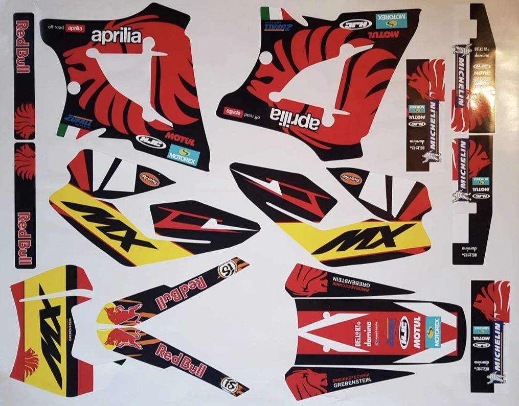 Kitdeco-moto.fr vous propose ce kit déco compatible pour Aprilia 125 MX !