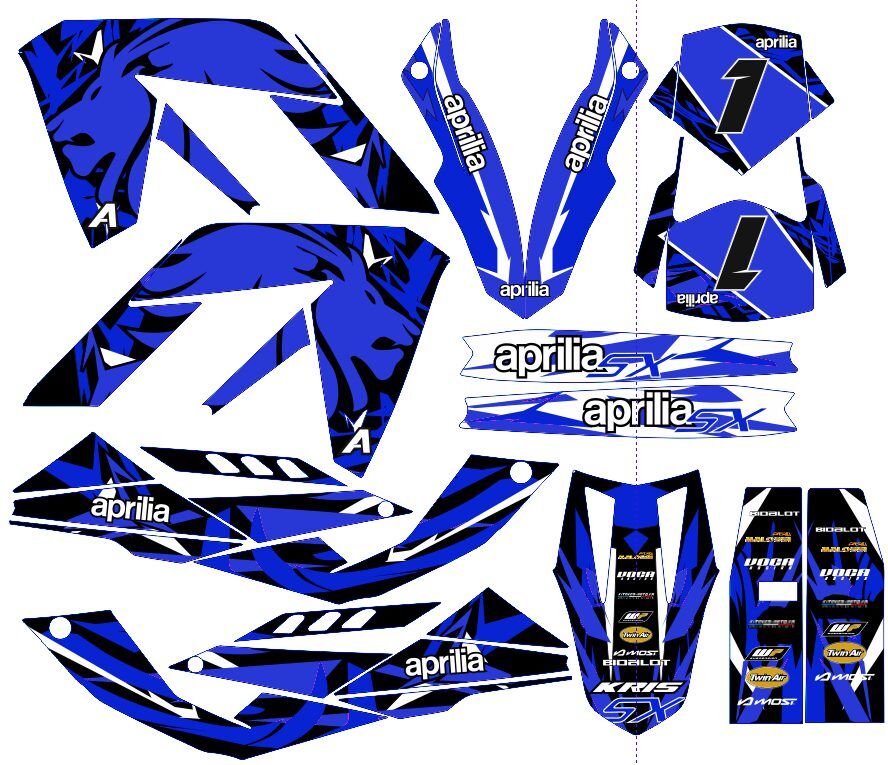 Kitdeco-moto.fr vous propose ce kit déco compatible pour APRILIA 50 RX / SX APRES 2006 !