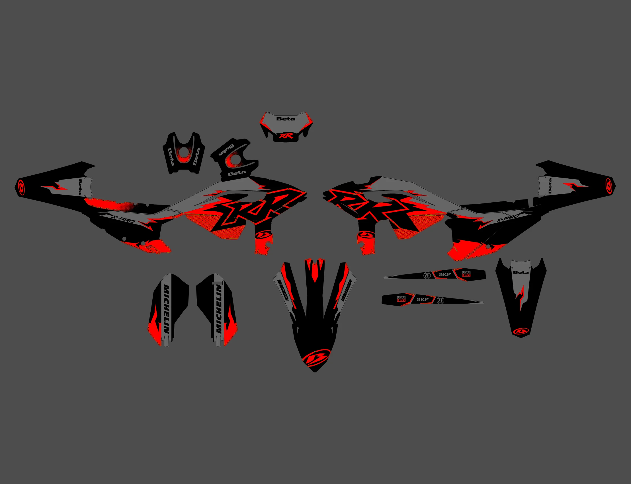 Kitdeco-moto.fr vous propose ce kit déco compatible pour Beta RR Race & X-Pro de 2025.