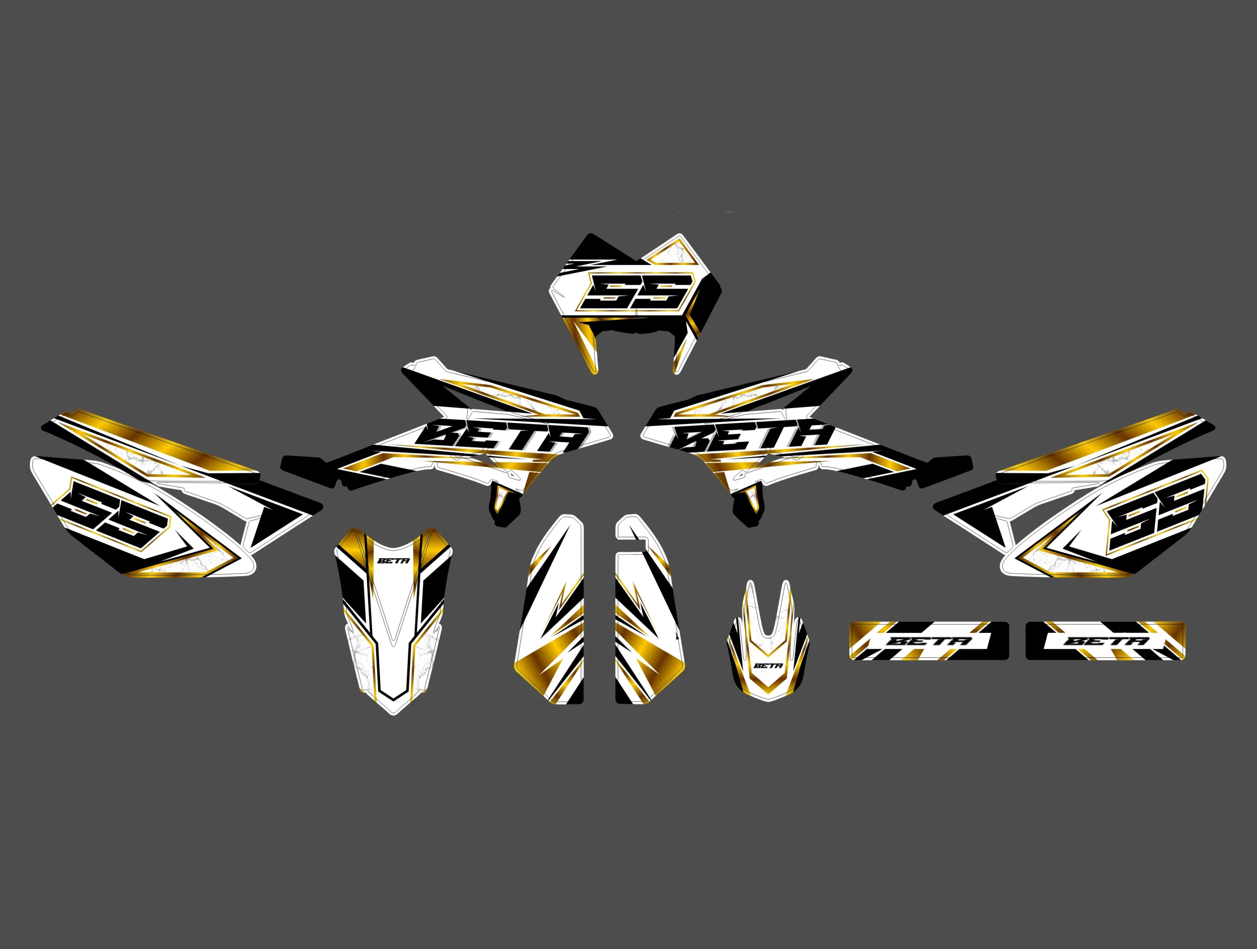 Pour une personnalisation encore plus poussée, vous pouvez customiser votre Kit déco Beta 50 – Airon Gold – 2011-2020 avec nos différentes options comme la base du Kit déco, la finition et pourquoi pas ajouter votre pseudo ou bien changer le numéro.
