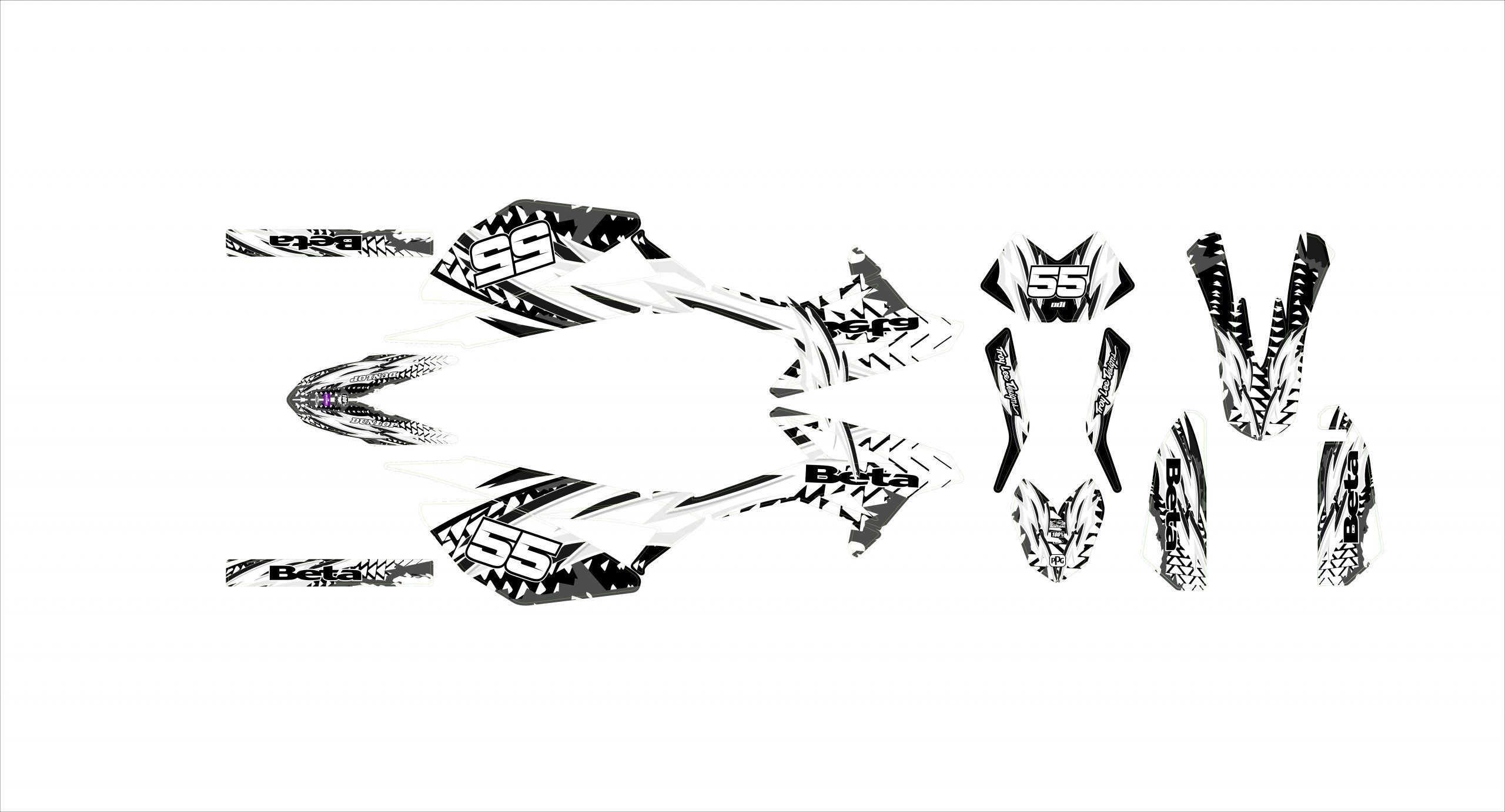 Pour une personnalisation encore plus poussée, vous pouvez customiser votre Kit déco Beta 50 – Eclair Blanc – 2011-2020 avec nos différentes options comme la base du Kit déco, la finition et pourquoi pas ajouter votre pseudo ou bien changer le numéro.