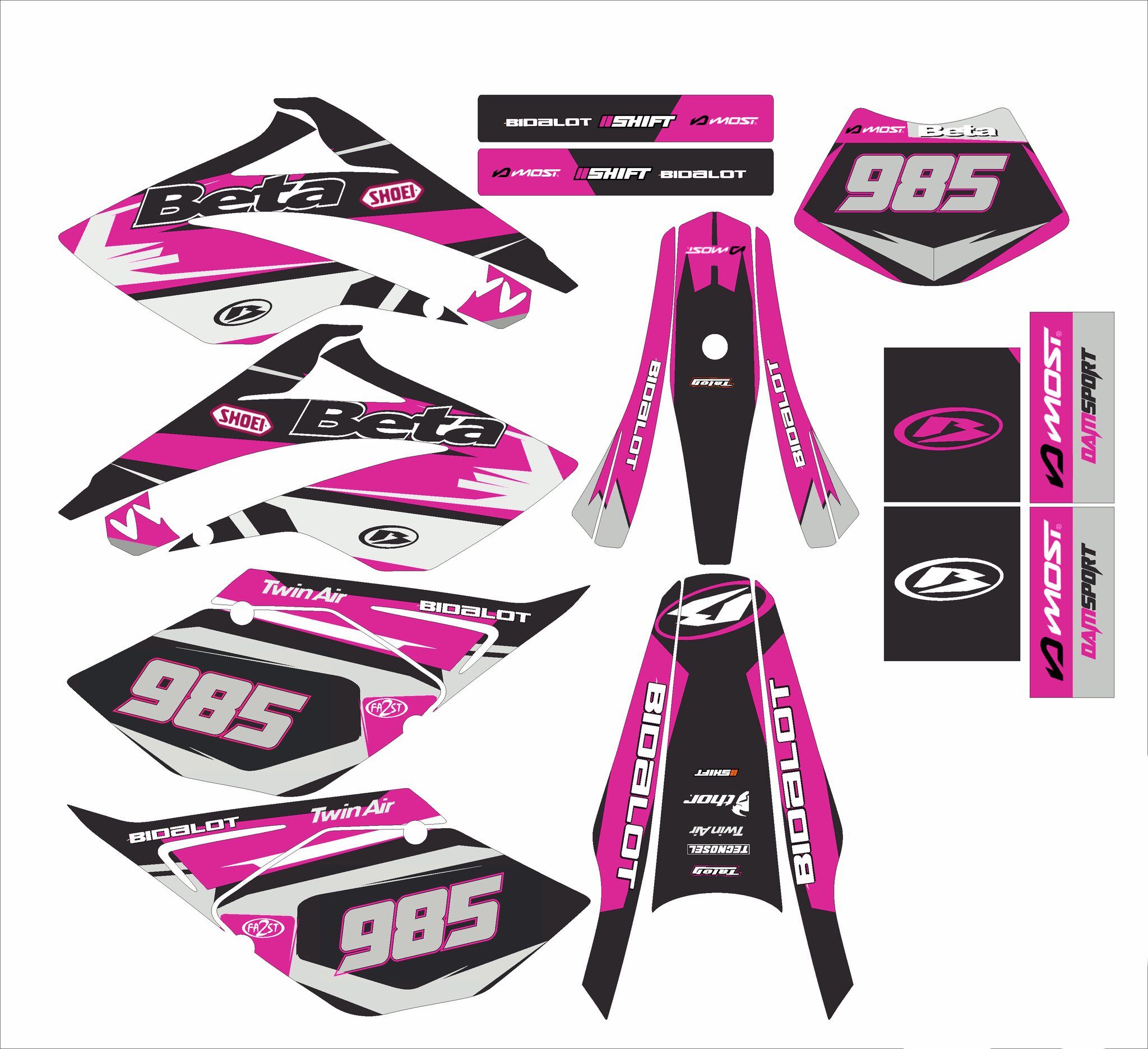 Pour une personnalisation encore plus poussée, vous pouvez customiser votre Kit déco Beta 50 – Racing Rose 2006-2010 avec nos différentes options comme la base du Kit déco, la finition et pourquoi pas ajouter votre pseudo ou bien changer le numéro.