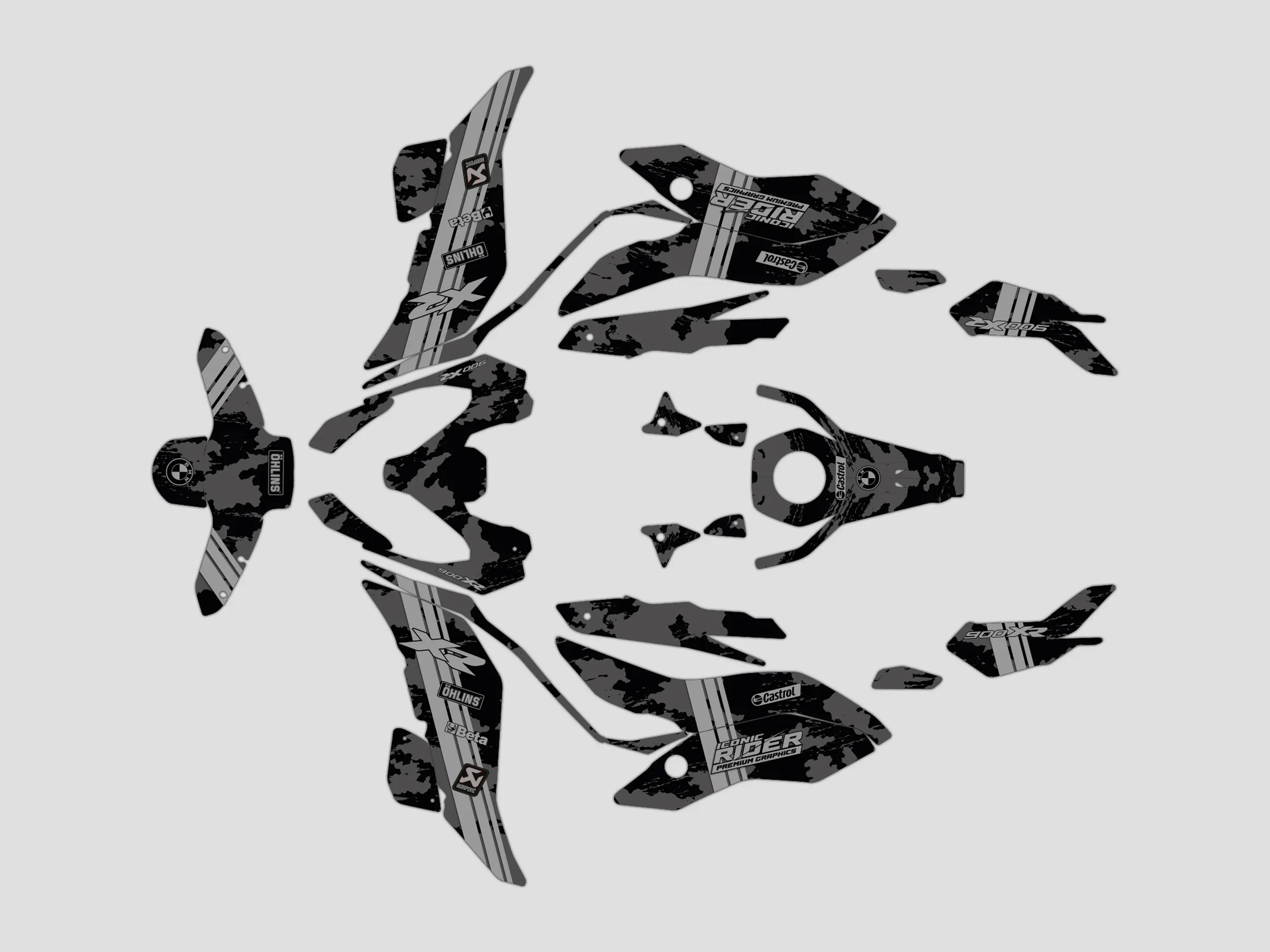 Pour une personnalisation encore plus poussée, vous pouvez customiser votre Kit déco BMW F900 XR – Camo avec nos différentes options comme la base du Kit déco, la finition et pourquoi pas ajouter votre pseudo ou bien changer le numéro.