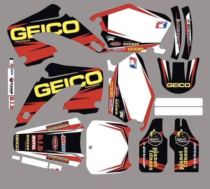 Avec le Kit déco Honda CR / CRF – GEICO #3, votre moto devient unique et vous aussi. Alors qu’attendez-vous pour donner du style à votre moto ? 🏍️