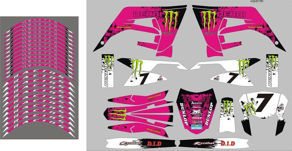 Le Kit déco Derbi 50 2018-2021 – Pink est parfait pour avoir une Derbi 50 2018-2021 unique et décorée. Le Kit déco Derbi 50 2018-2021 – Pink est fabriqué avec des matériaux spécialement conçus pour les sports mécaniques. Il bénéficie d’une protection anti-UV qui lui assure une très grande longévité. Vous pourrez le choisir en différentes épaisseurs, allant de 200 microns à 550 microns.