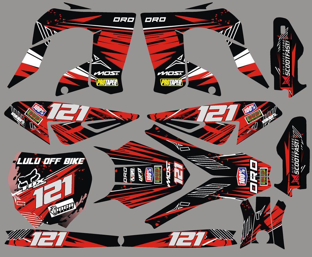 Pour une personnalisation encore plus poussée, vous pouvez customiser votre Kit déco Derbi 50 – DRD PRO – Red Line avec nos différentes options comme la base du Kit déco, la finition et pourquoi pas ajouter votre pseudo ou bien changer le numéro.