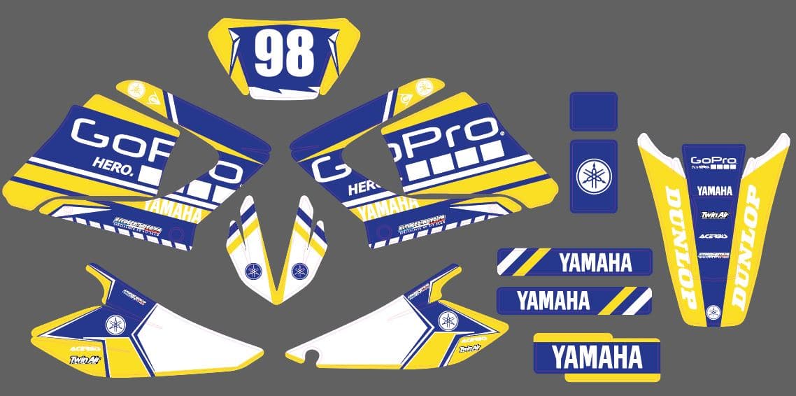 Pour une personnalisation encore plus poussée, vous pouvez customiser votre Kit déco Yamaha DT 125 – GoPro avec nos différentes options comme la base du Kit déco, la finition et pourquoi pas ajouter votre pseudo ou bien changer le numéro.