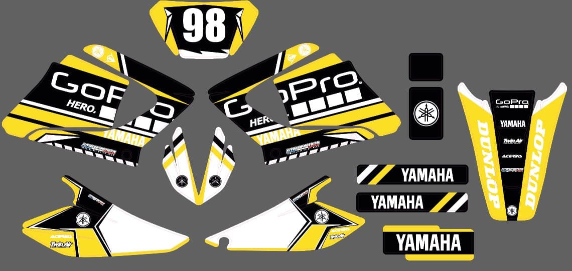 👉 Pour une pose facile et sans bulle, nous vous conseillons de choisir votre Kit déco Yamaha DT 125 – GoPro Yellow en épaisseur de 550 microns.