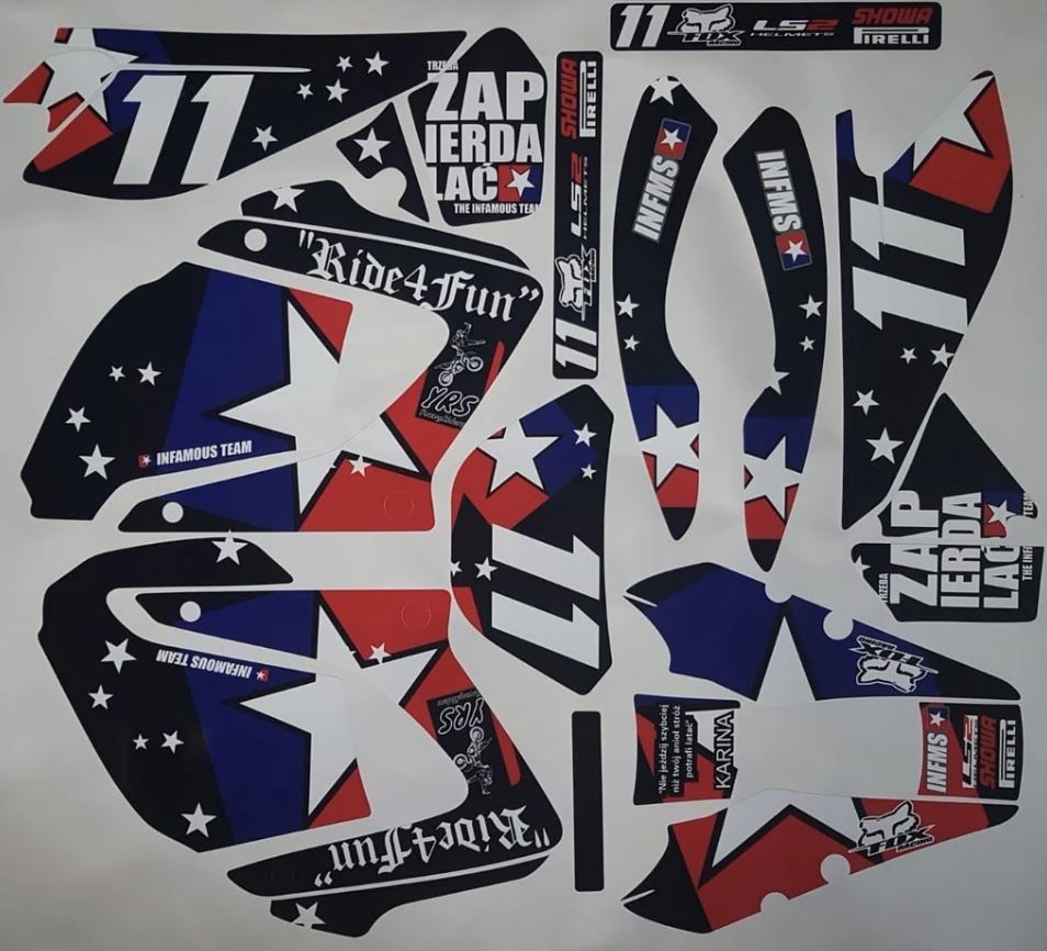 Pour une personnalisation encore plus poussée, vous pouvez customiser votre Kit déco Yamaha DT 125 – Ride for Fun avec nos différentes options comme la base du Kit déco, la finition et pourquoi pas ajouter votre pseudo ou bien changer le numéro.
