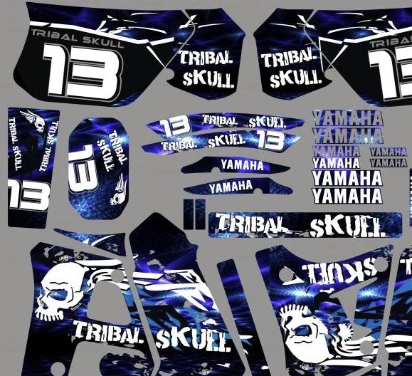 Pour une personnalisation encore plus poussée, vous pouvez customiser votre Kit déco Yamaha DT 125 -Tribal Bleu avec nos différentes options comme la base du Kit déco, la finition et pourquoi pas ajouter votre pseudo ou bien changer le numéro.