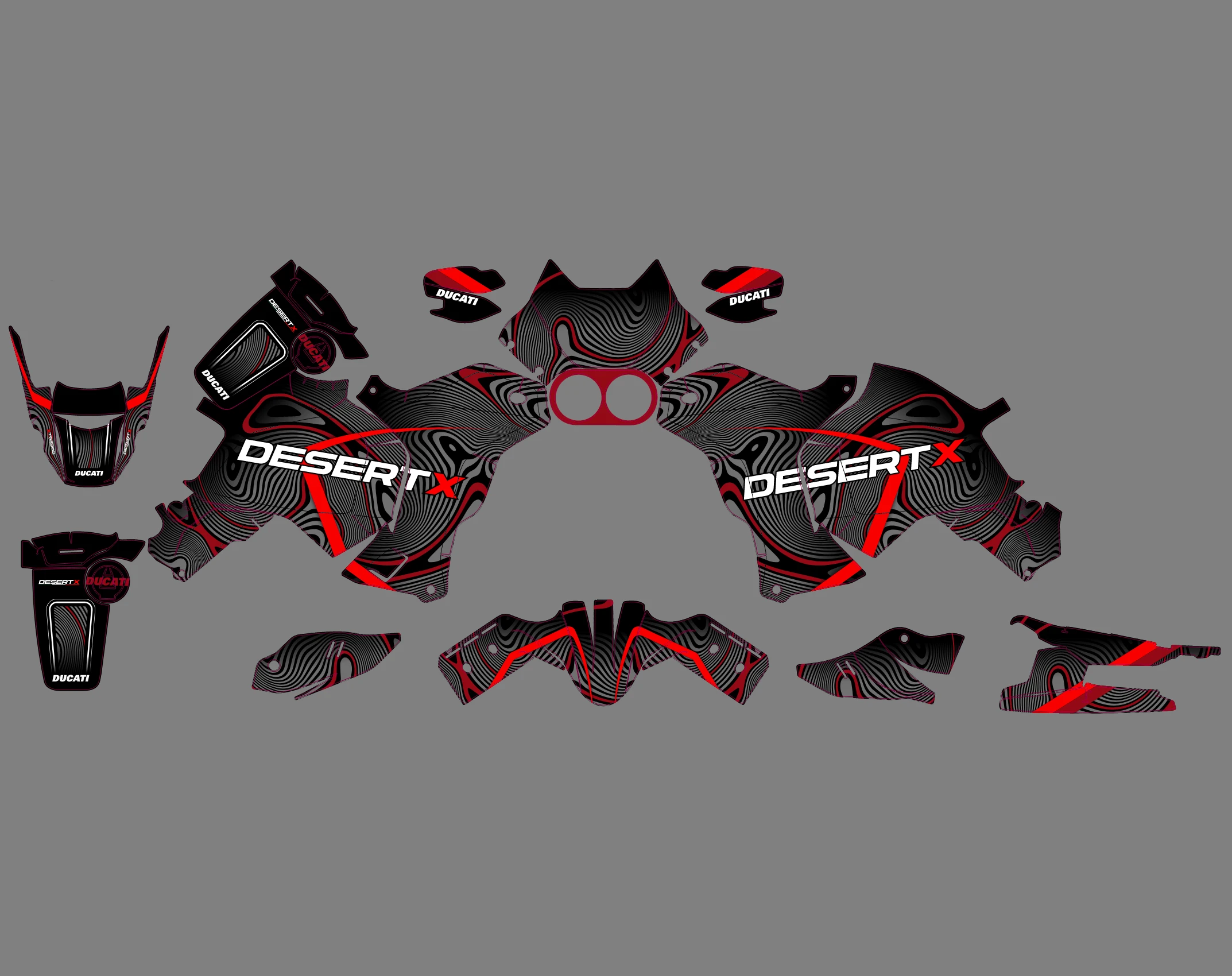 Kitdeco-moto.fr vous propose ce kit déco compatible pour Ducati Desert X !