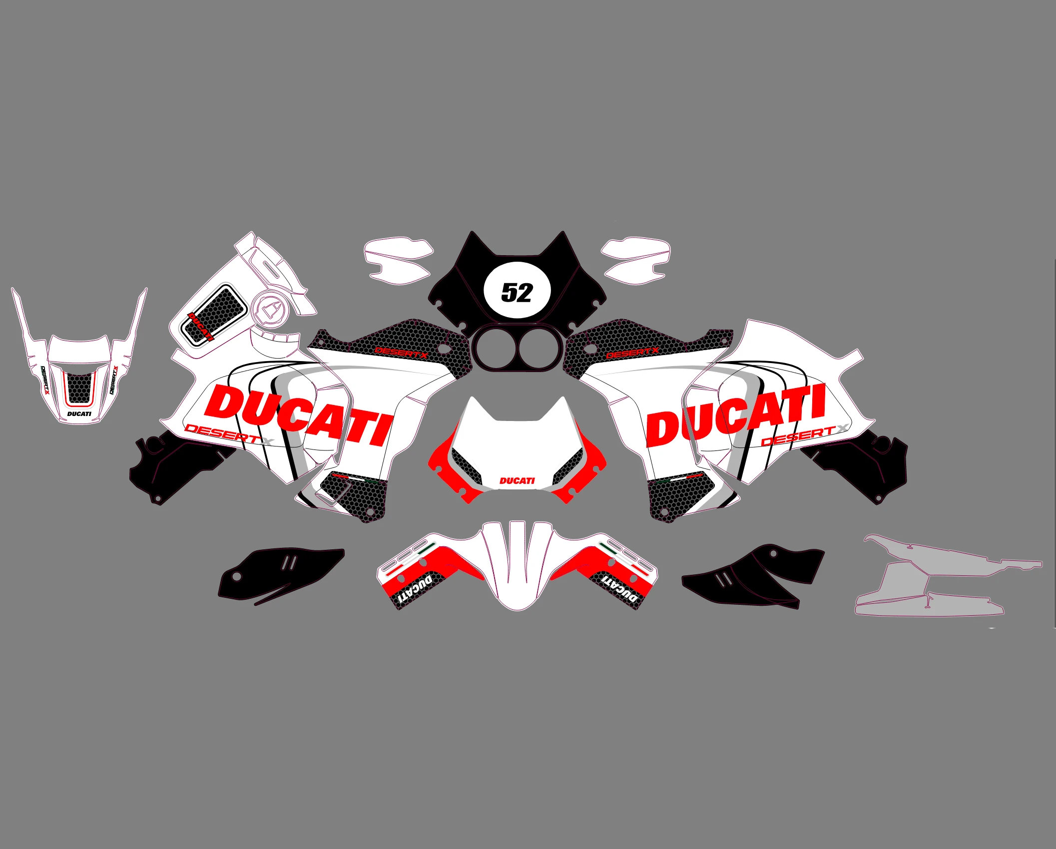 Kitdeco-moto.fr vous propose ce kit déco compatible pour Ducati Desert X !