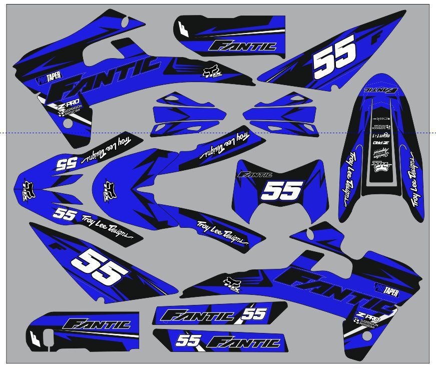 Pour une personnalisation encore plus poussée, vous pouvez customiser votre Kit déco Fantic XM / XE 50 – Craft Bleu avec nos différentes options comme la base du Kit déco, la finition et pourquoi pas ajouter votre pseudo ou bien changer le numéro.