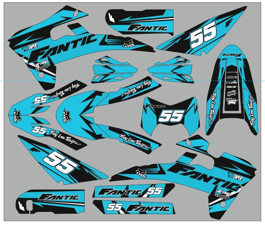 Pour une personnalisation encore plus poussée, vous pouvez customiser votre Kit déco Fantic XM / XE 50 – Craft Cyan avec nos différentes options comme la base du Kit déco, la finition et pourquoi pas ajouter votre pseudo ou bien changer le numéro.