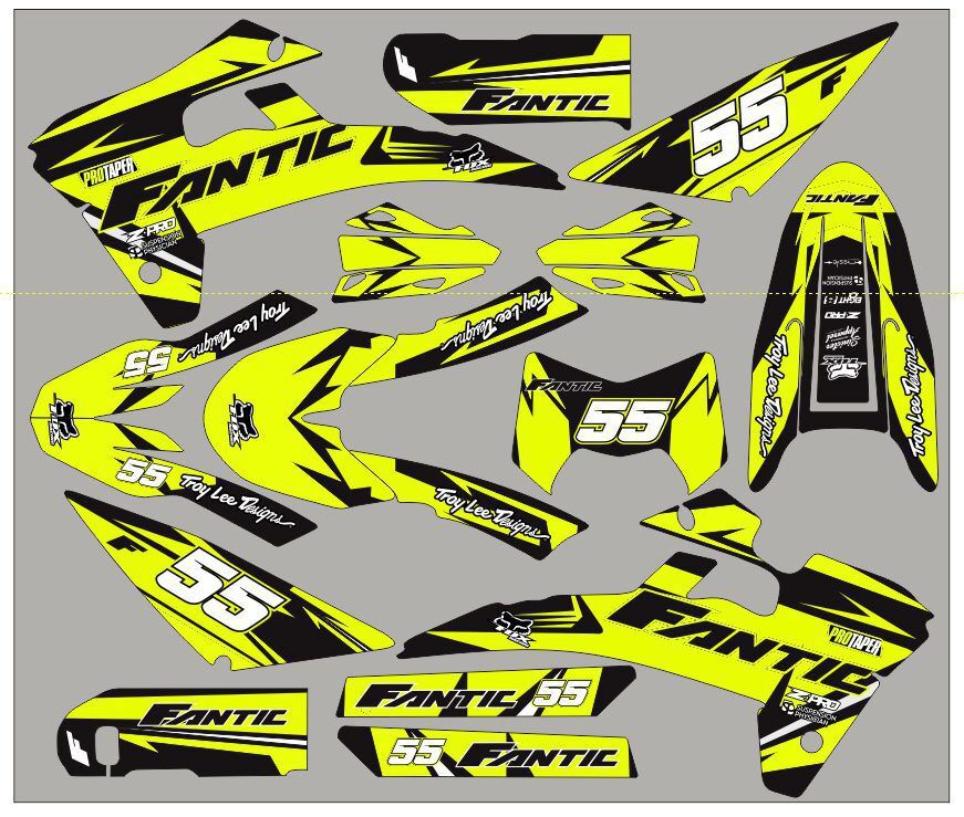Pour une personnalisation encore plus poussée, vous pouvez customiser votre Kit déco Fantic XM / XE 50 – Craft Jaune avec nos différentes options comme la base du Kit déco, la finition et pourquoi pas ajouter votre pseudo ou bien changer le numéro.