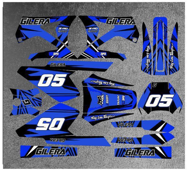Pour une personnalisation encore plus poussée, vous pouvez customiser votre Kit déco Gilera RCR avant 2011 – Craft Bleu avec nos différentes options comme la base du Kit déco, la finition et pourquoi pas ajouter votre pseudo ou bien changer le numéro.