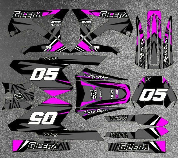 Pour une personnalisation encore plus poussée, vous pouvez customiser votre Kit déco Gilera RCR avant 2011 – Craft Gris / Rose avec nos différentes options comme la base du Kit déco, la finition et pourquoi pas ajouter votre pseudo ou bien changer le numéro.