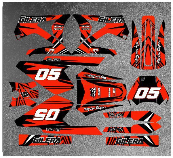 Pour une personnalisation encore plus poussée, vous pouvez customiser votre Kit déco Gilera RCR avant 2011 – Craft Rouge avec nos différentes options comme la base du Kit déco, la finition et pourquoi pas ajouter votre pseudo ou bien changer le numéro.