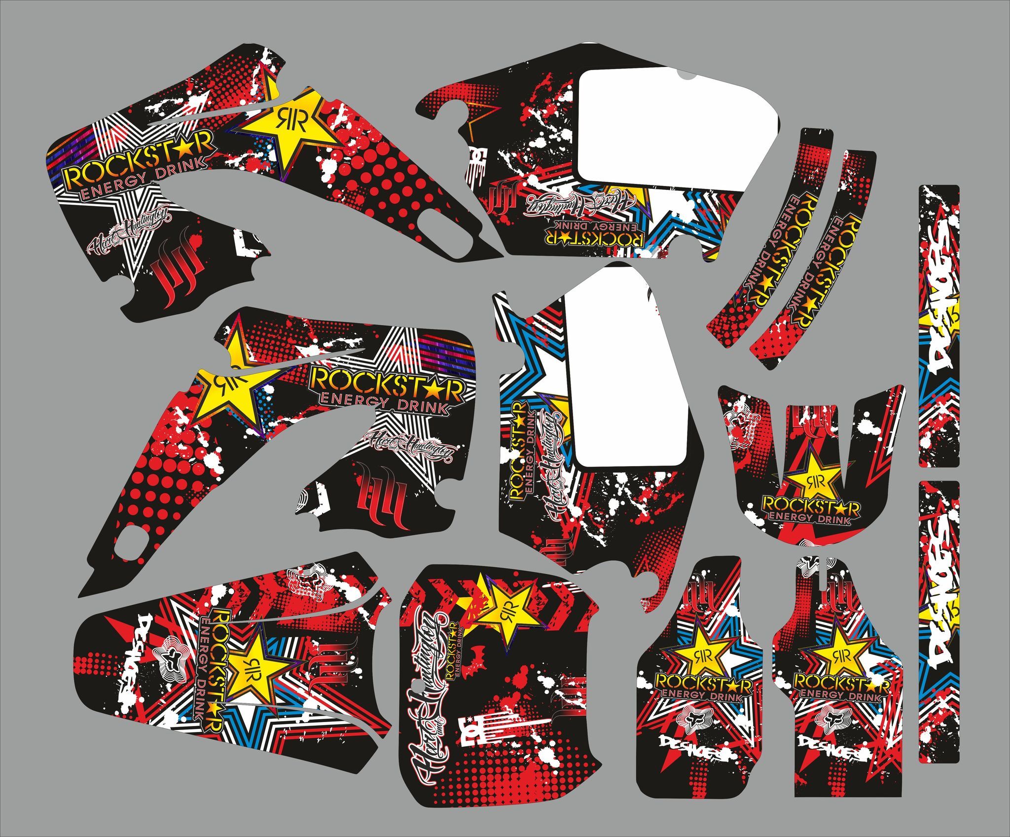 Pour une personnalisation encore plus poussée, vous pouvez customiser votre Kit déco Honda 125 / 250 CR (2000-2001) – Rockstar Rouge avec nos différentes options comme la base du Kit déco, la finition et pourquoi pas ajouter votre pseudo ou bien changer le numéro.