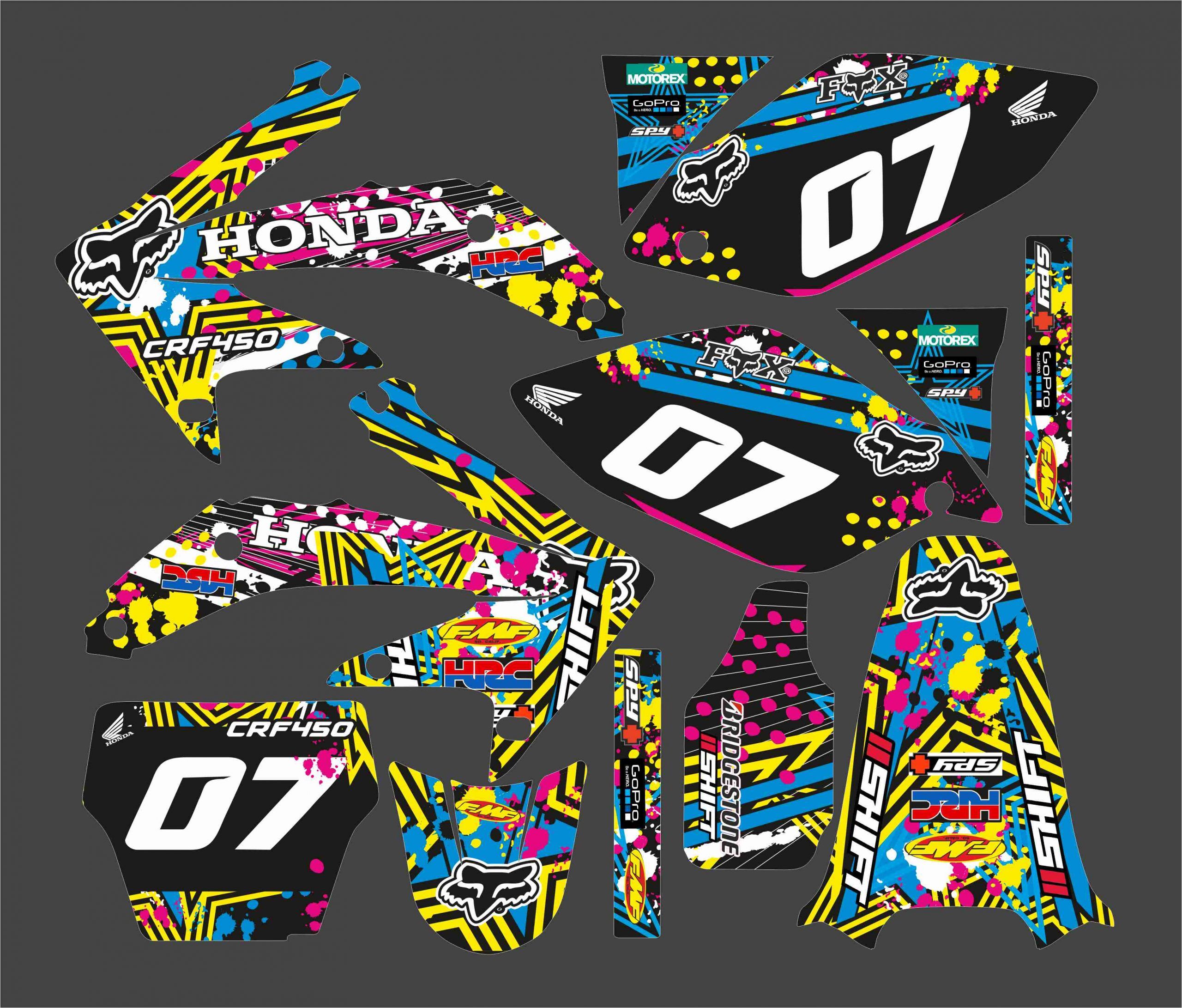 Kitdeco-moto.fr vous propose ce kit déco compatible pour Honda 450 CRF de 2005, 2006, 2007 et 2008 !