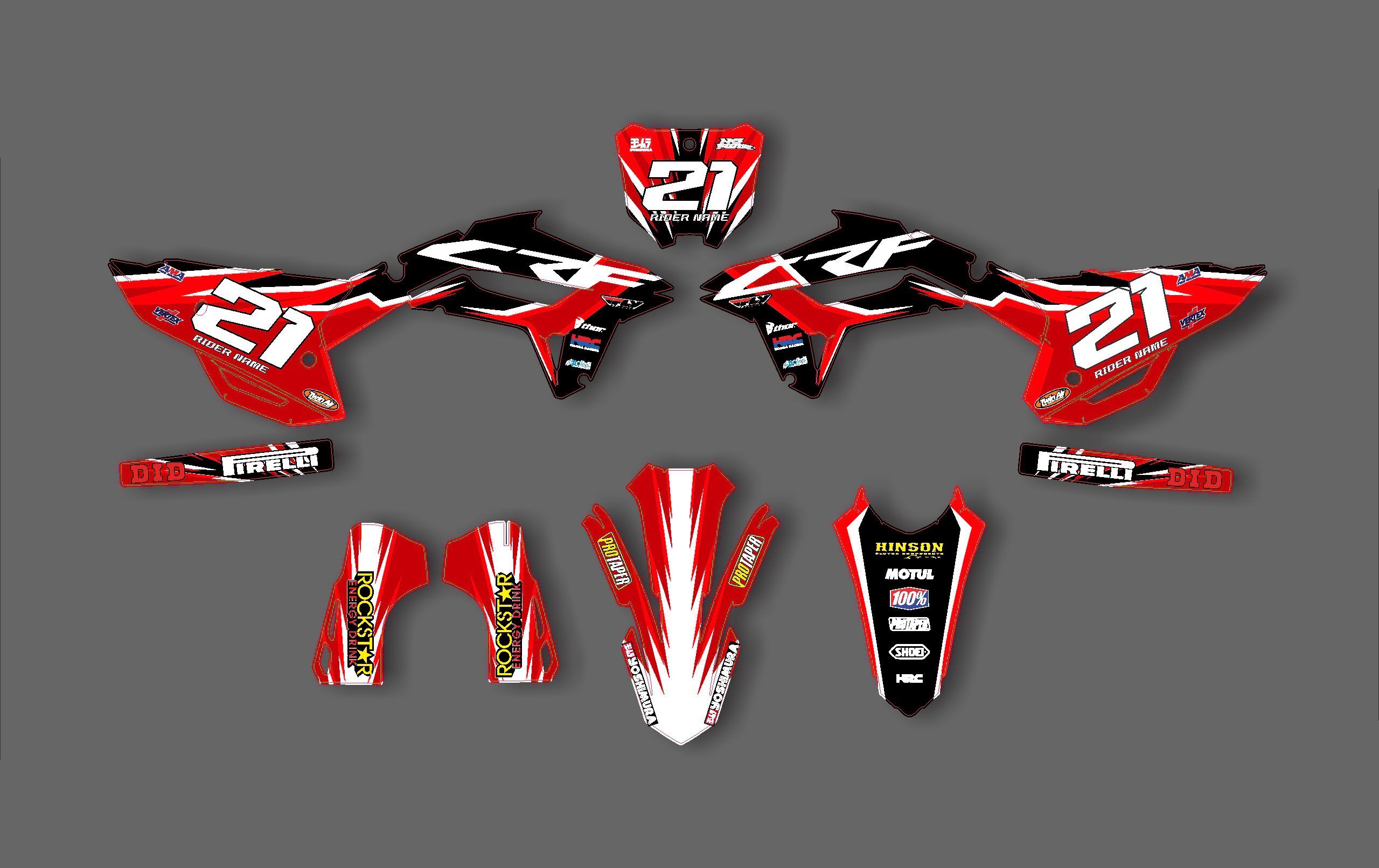 Kitdeco-moto.fr vous propose ce kit déco compatible pour Honda 250 CRF de 2022 et 2024 !