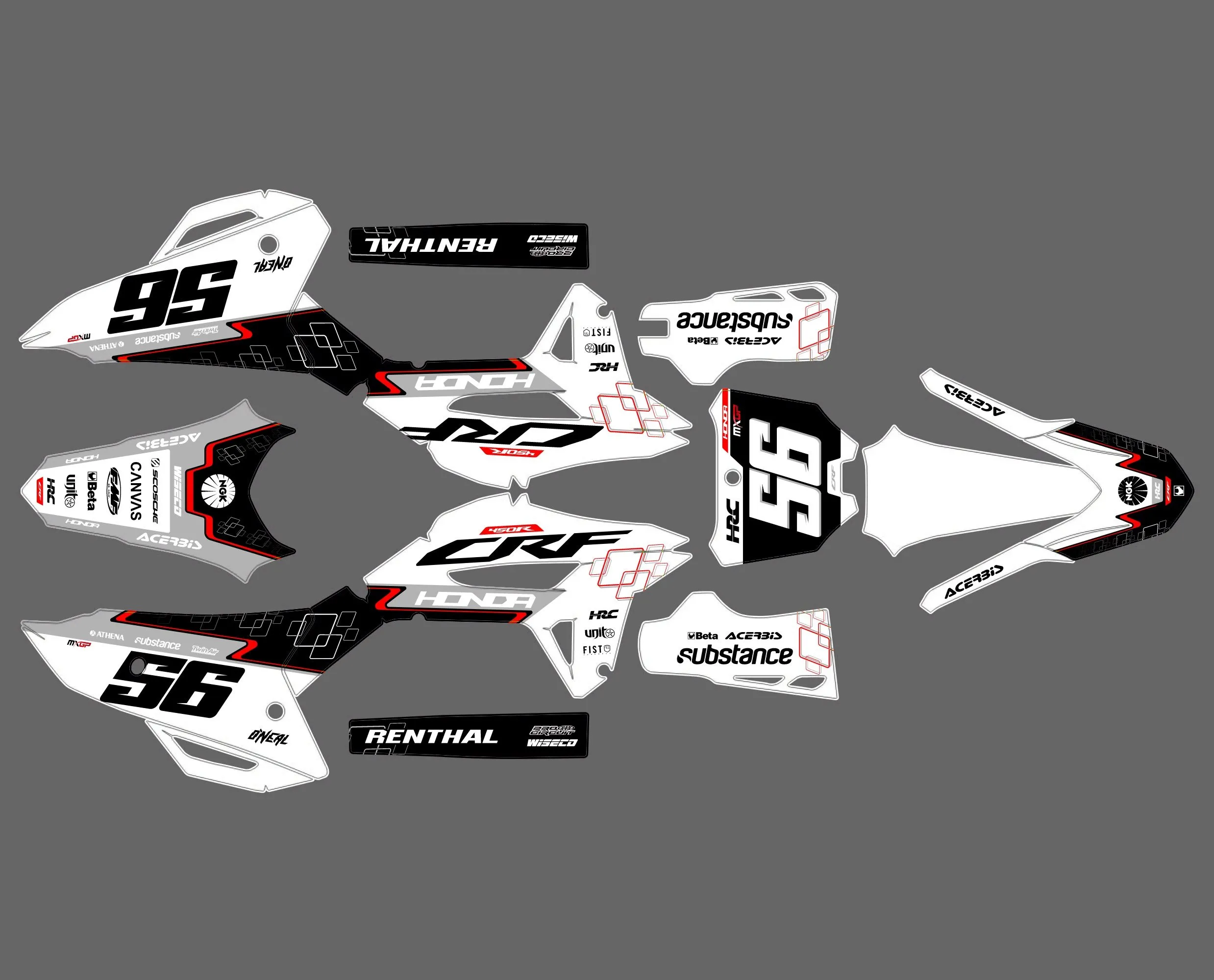 Pour une personnalisation encore plus poussée, vous pouvez customiser votre Kit déco Honda 250 CRF (2022-2024) – Geometric avec nos différentes options comme la base du Kit déco, la finition et pourquoi pas ajouter votre pseudo ou bien changer le numéro.
