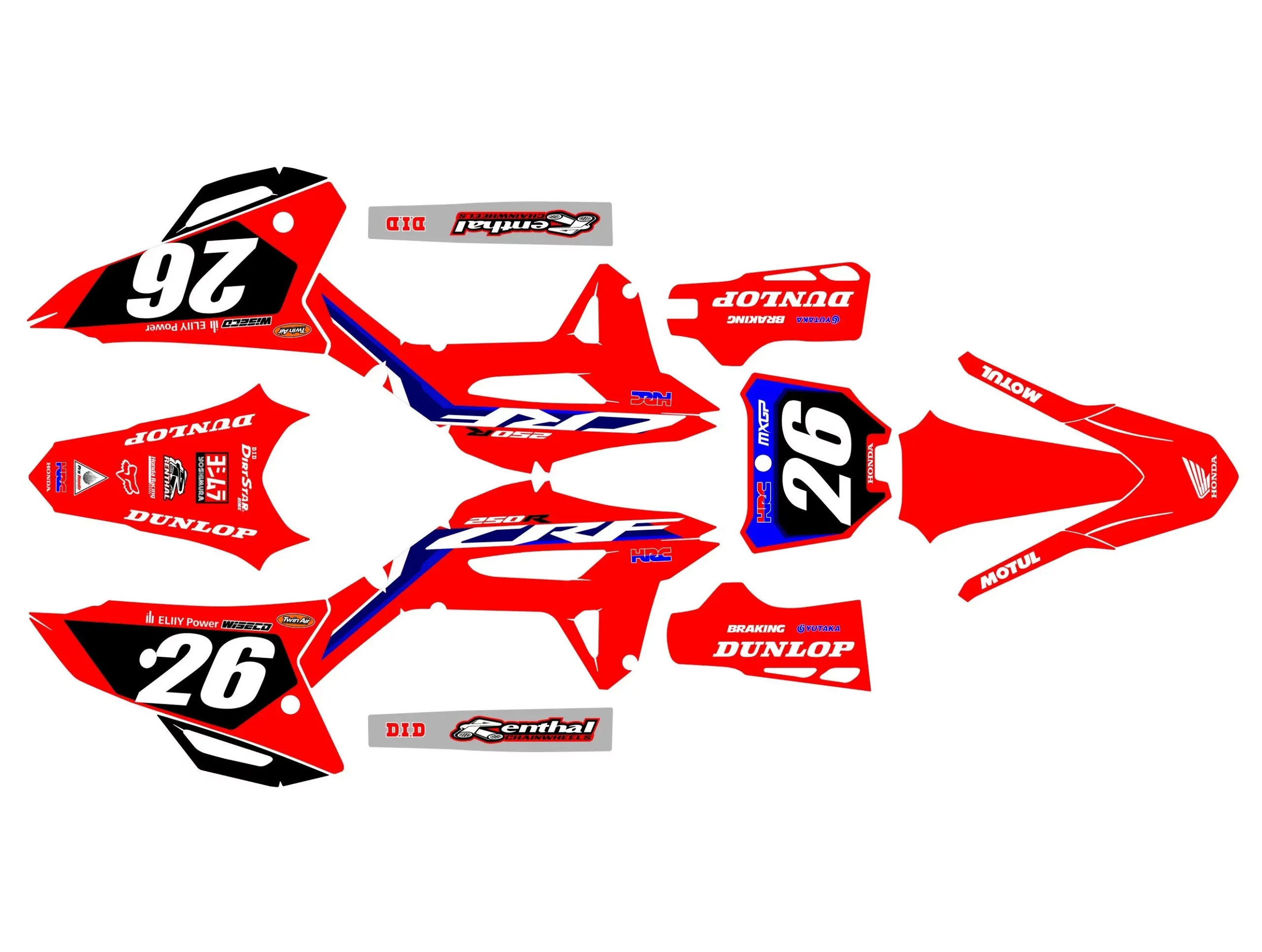 Kitdeco-moto.fr vous propose ce kit déco compatible pour Honda 250 CRF de 2022 à 2024 !