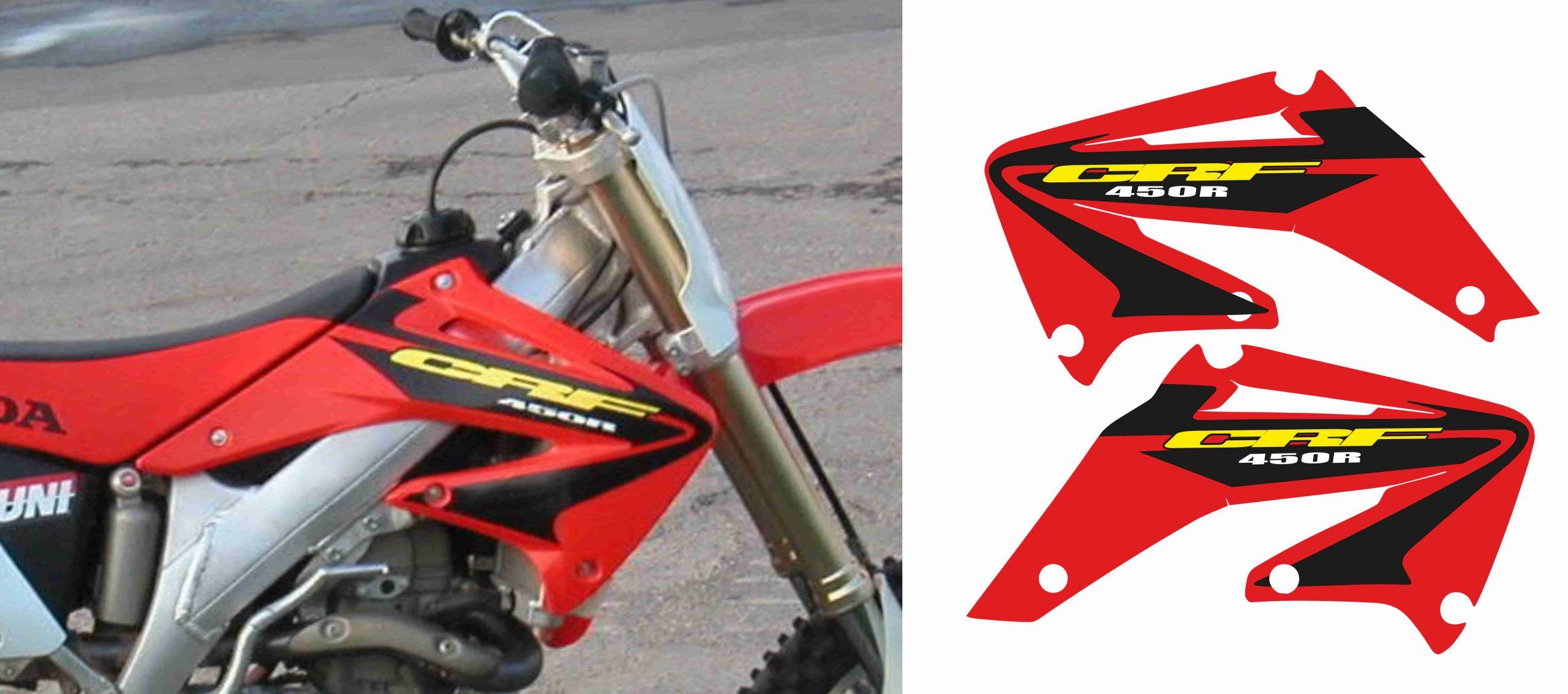 Kitdeco-moto.fr vous propose ce kit déco compatible pour Honda 450 CRF de 2002, 2003 et 2004 !
