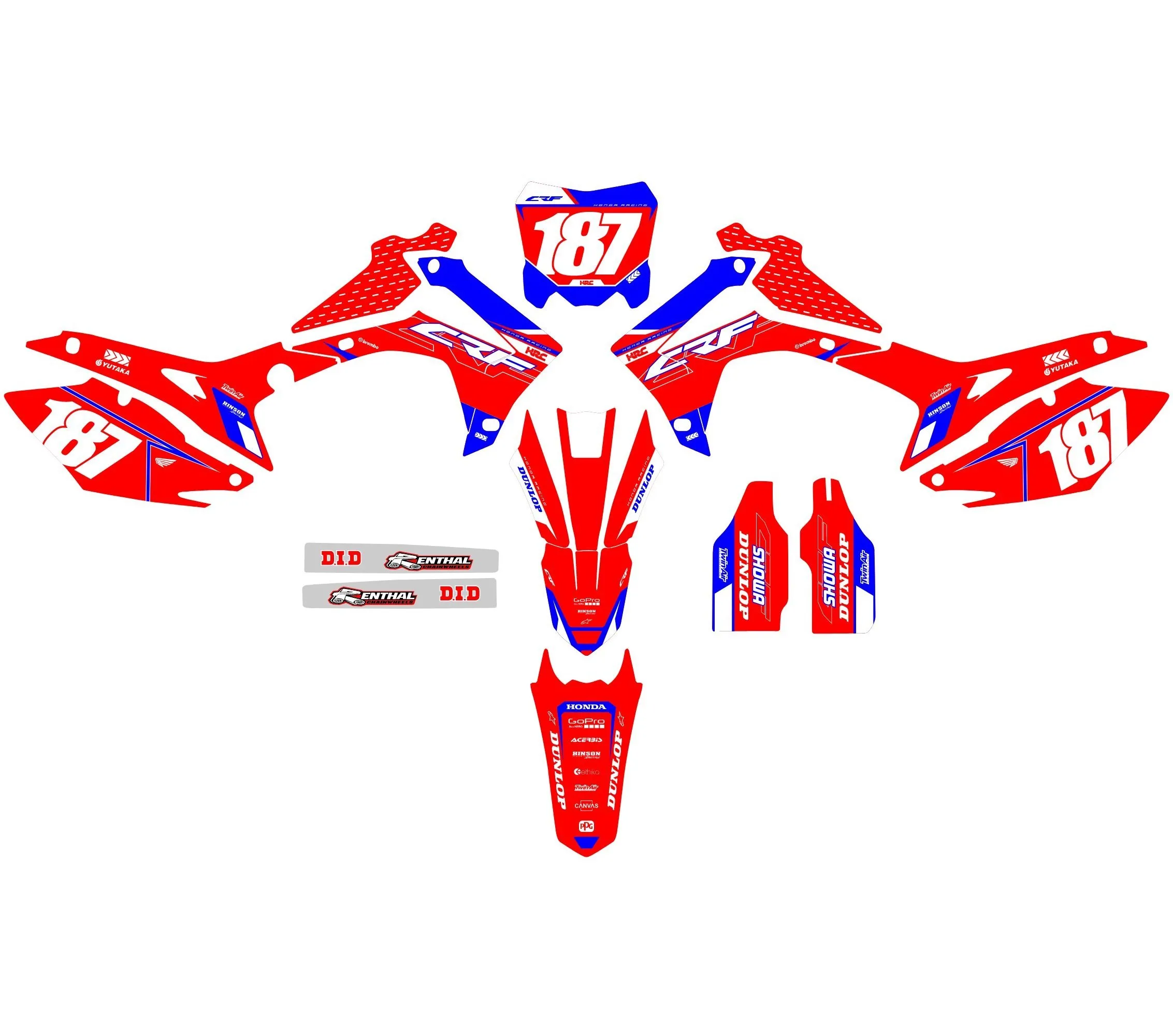 Avec le Kit déco Honda 450 CRF (2013-2016) – HRC, votre moto devient unique et vous aussi. Alors qu’attendez-vous pour donner du style à votre moto ? 🏍️