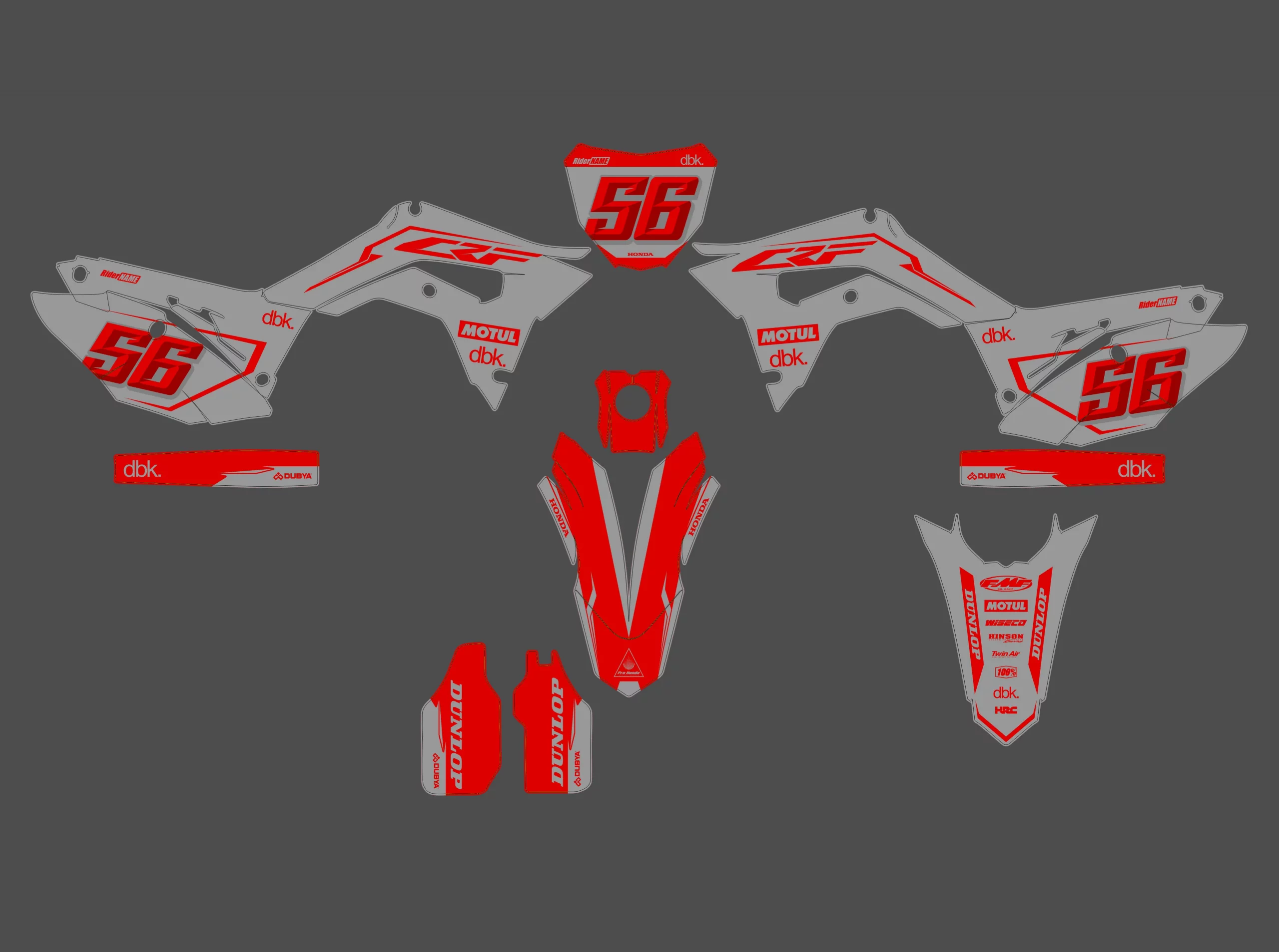 Pour une personnalisation encore plus poussée, vous pouvez customiser votre Kit déco Honda 450 CRF (2017-2020) – Factory Gris avec nos différentes options comme la base du Kit déco, la finition et pourquoi pas ajouter votre pseudo ou bien changer le numéro.
