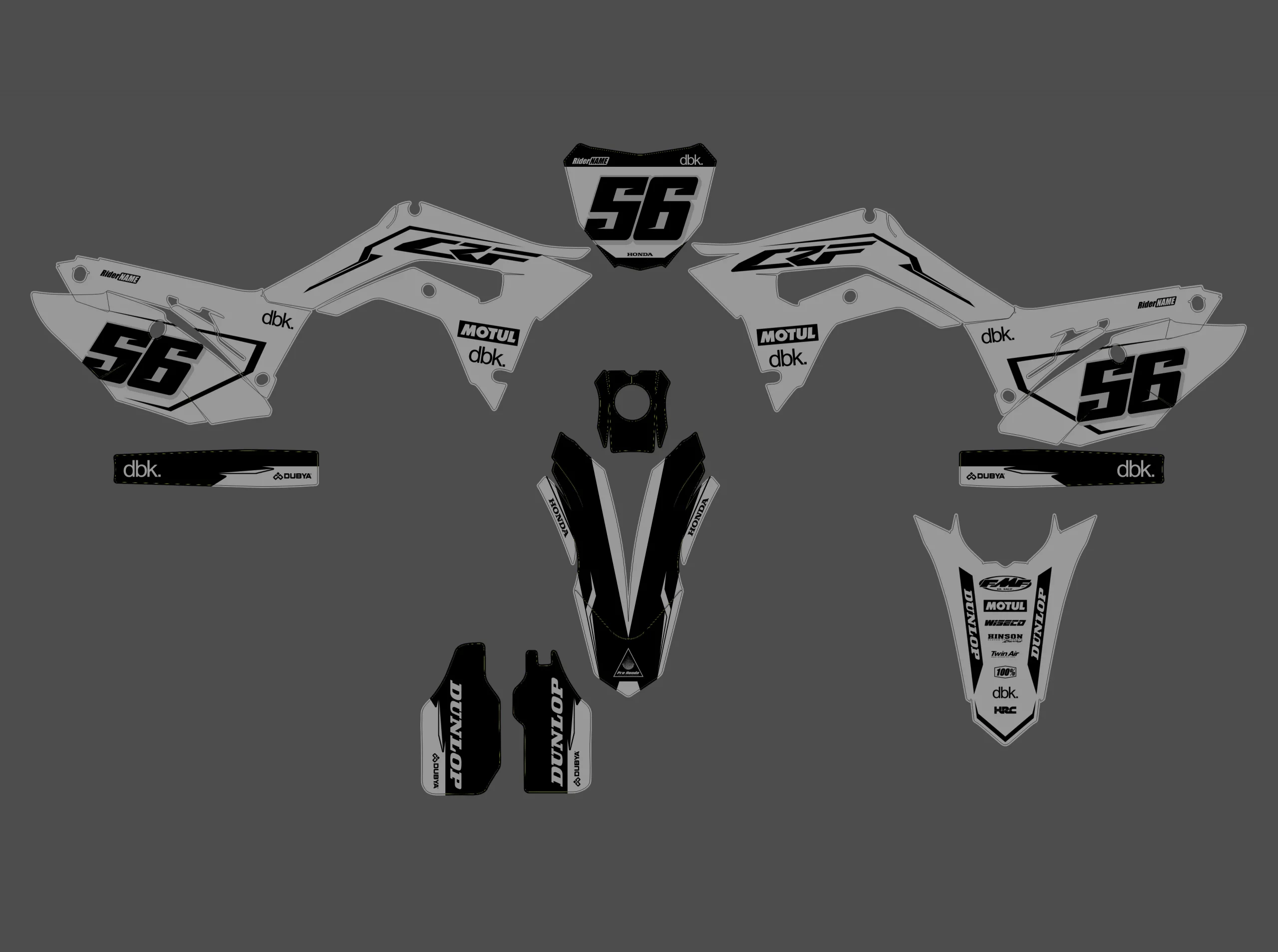 Pour une personnalisation encore plus poussée, vous pouvez customiser votre Kit déco Honda 450 CRF (2017-2020) – Grey Factory avec nos différentes options comme la base du Kit déco, la finition et pourquoi pas ajouter votre pseudo ou bien changer le numéro.