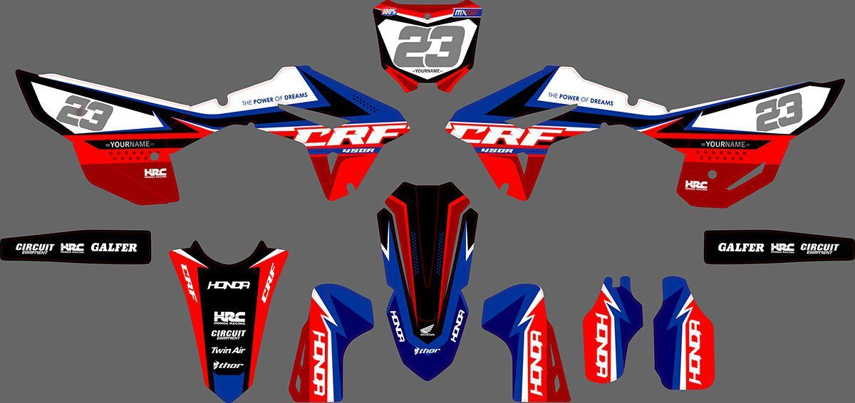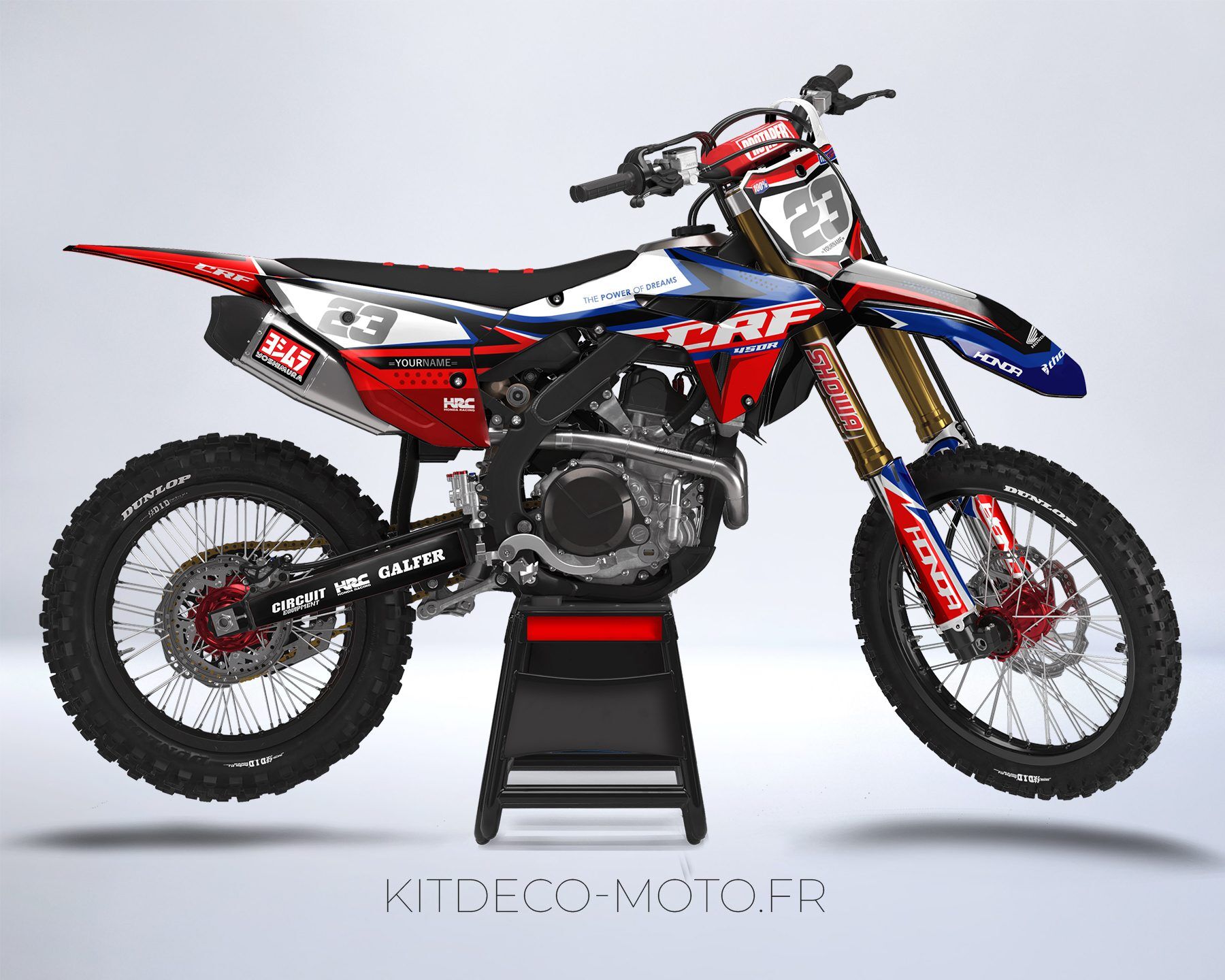 Kitdeco-moto.fr vous propose ce kit déco compatible pour Honda 450 CRF de 2021 et 2024 !