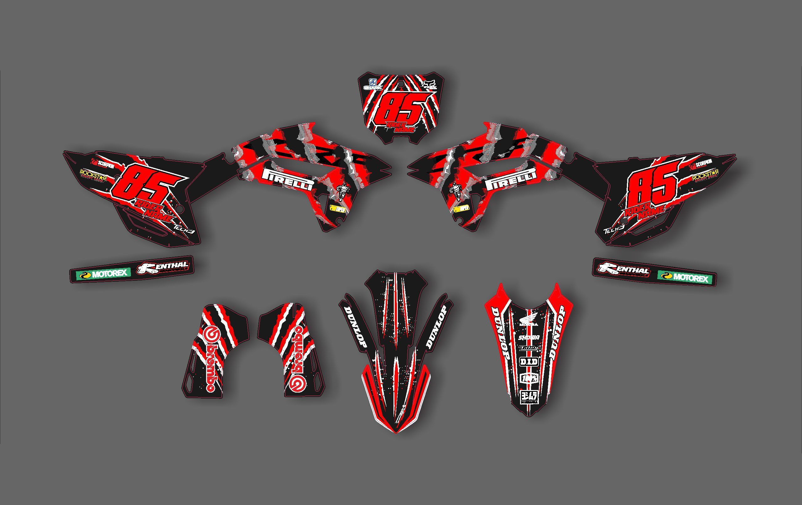 Kitdeco-moto.fr vous propose ce kit déco compatible pour Honda 450 CRF de 2021 et 2024 !