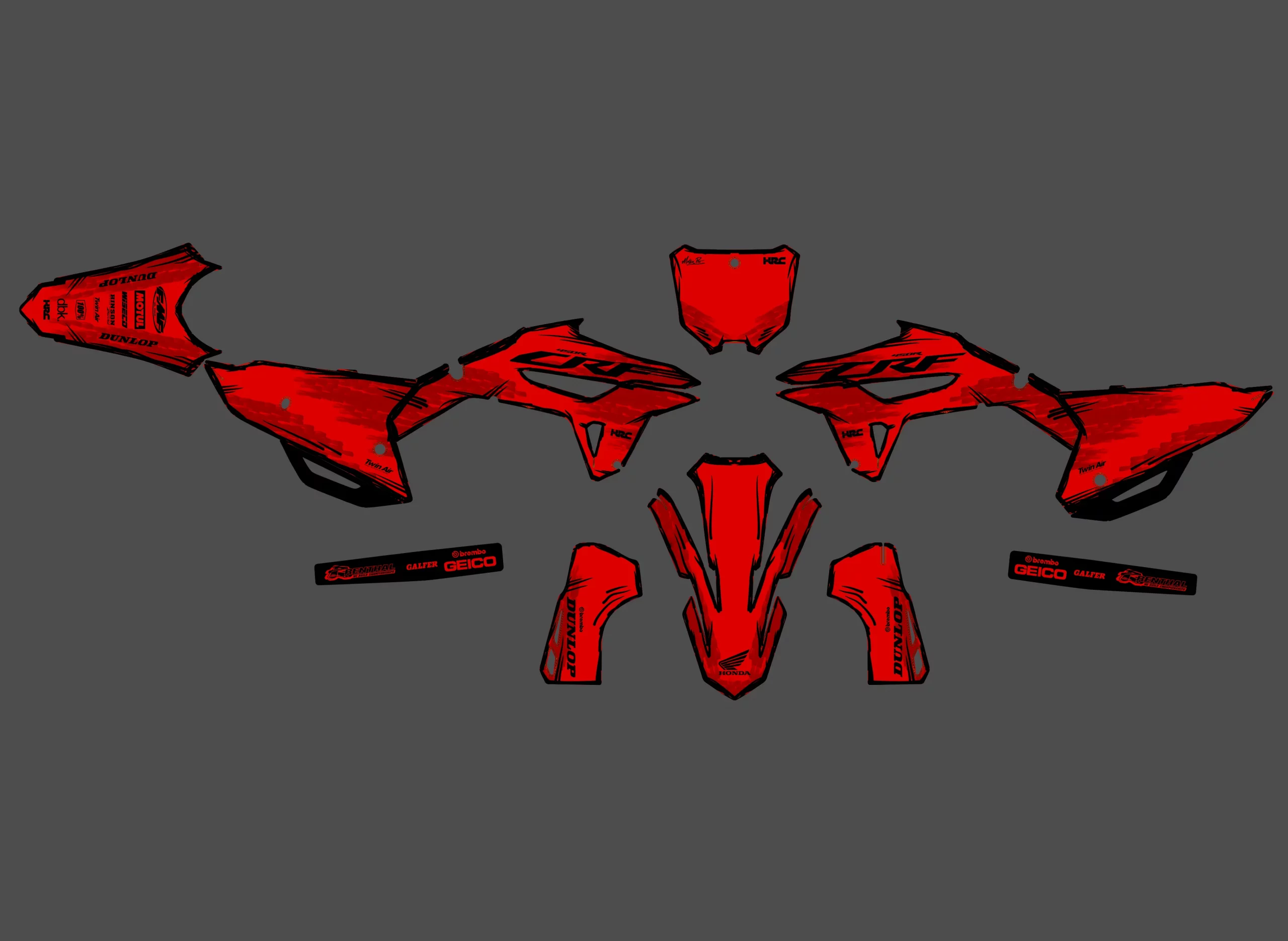 Kitdeco-moto.fr vous propose ce kit déco compatible pour Honda 450 CRF de 2021 et 2024 !