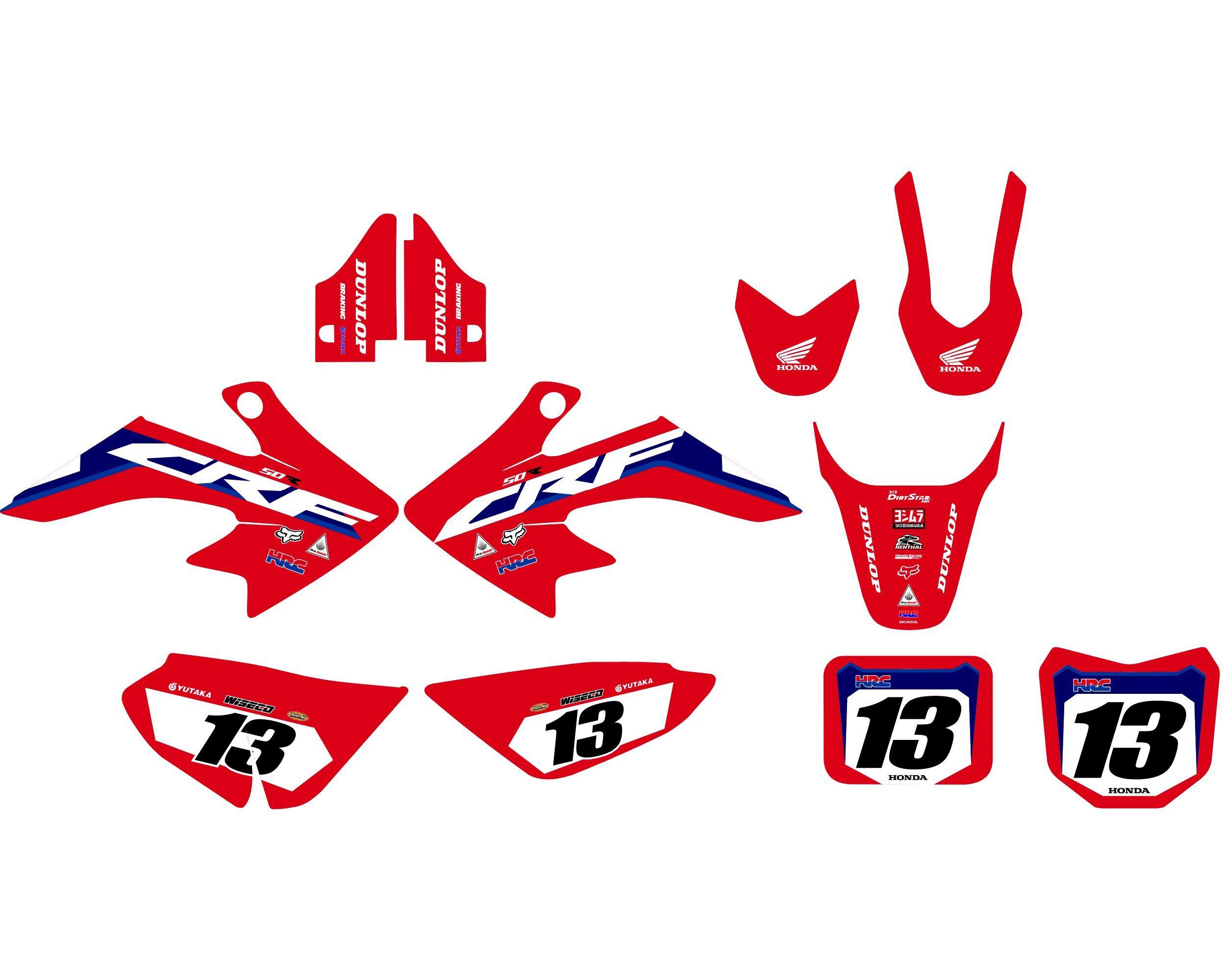 Kitdeco-moto.fr vous propose ce kit déco compatible pour Honda 50 CR 2004-2013 !