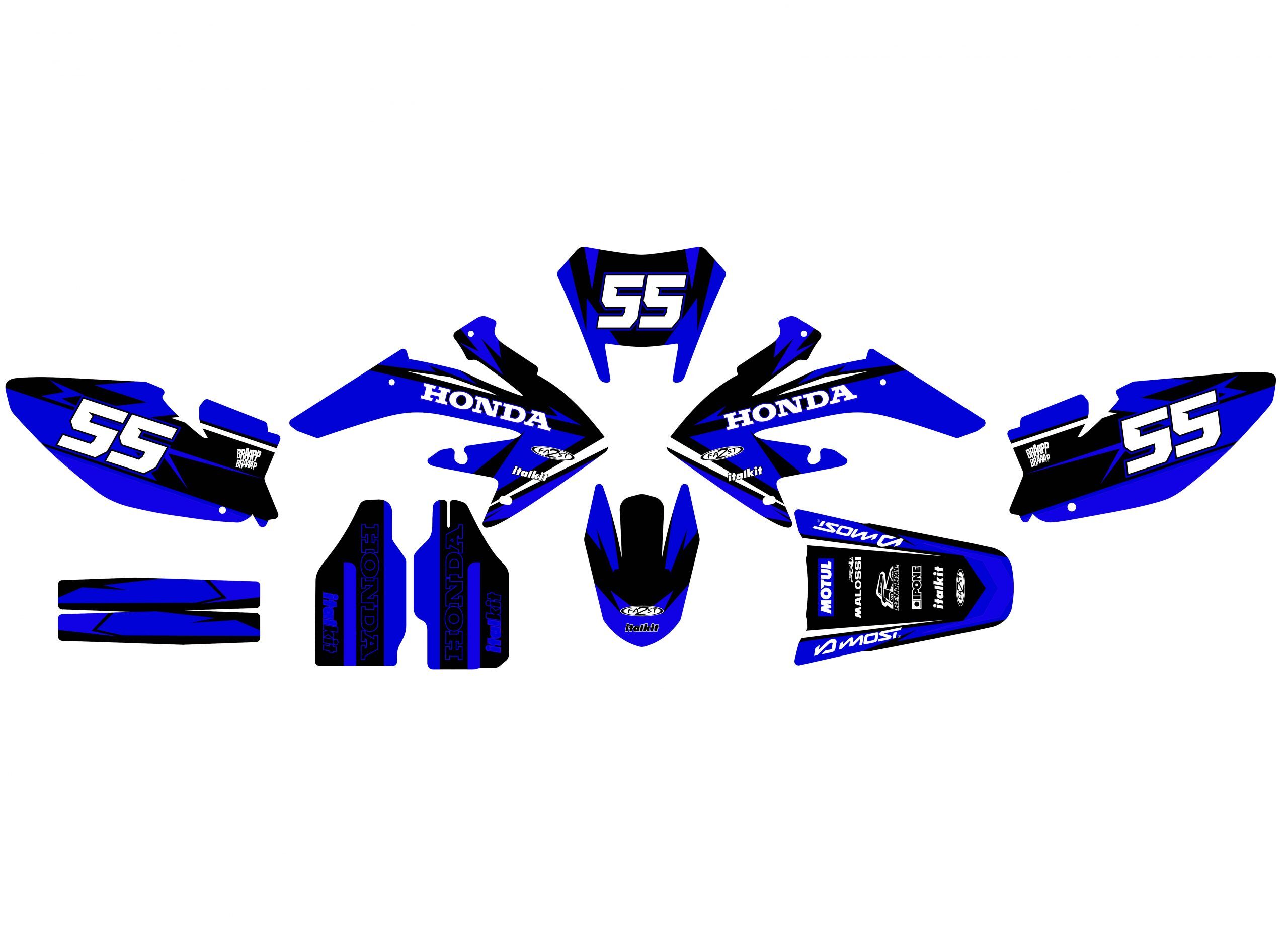 Pour une personnalisation encore plus poussée, vous pouvez customiser votre Kit déco Honda 50 HM – Craft Bleu avec nos différentes options comme la base du Kit déco, la finition et pourquoi pas ajouter votre pseudo ou bien changer le numéro.