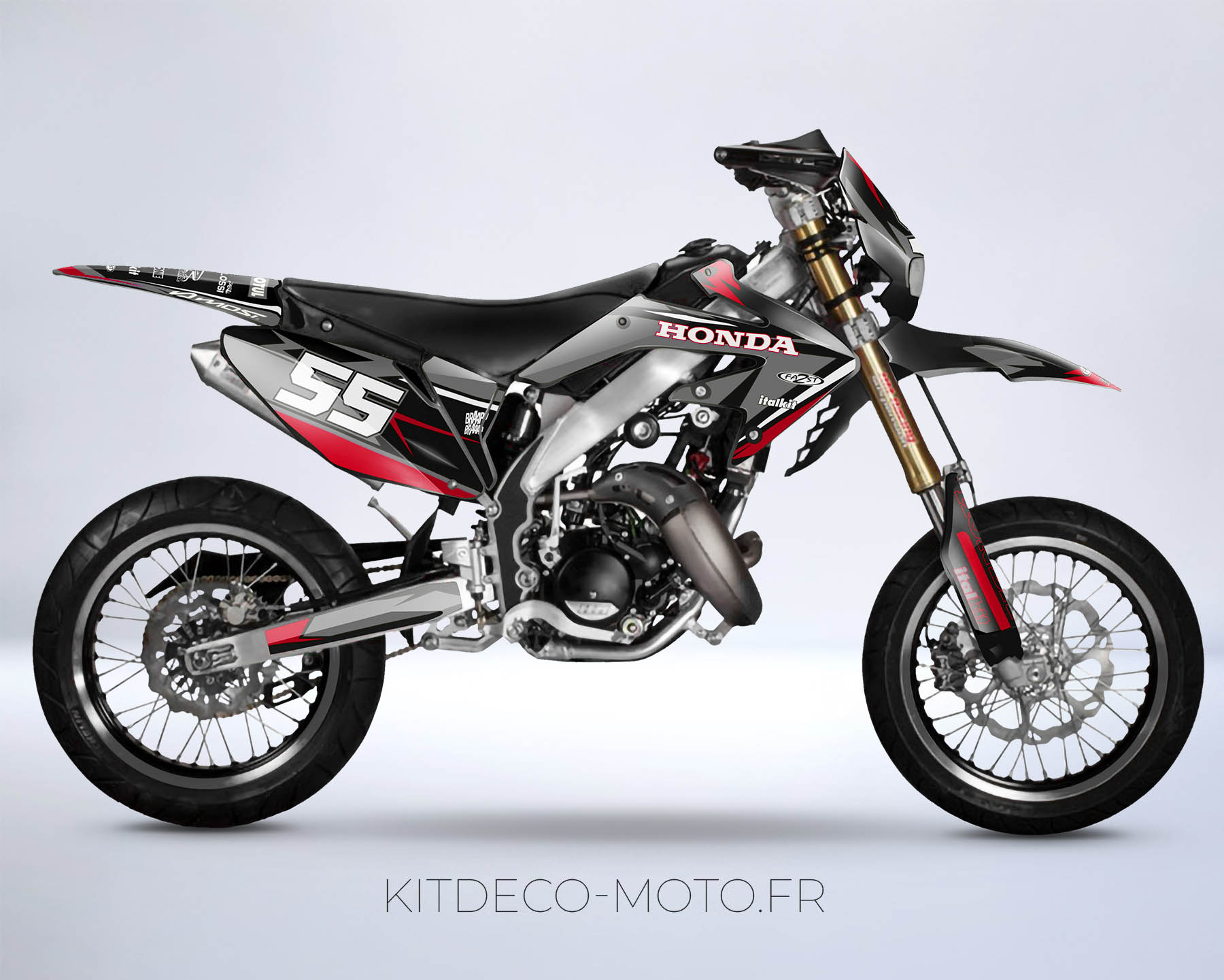 Pour une personnalisation encore plus poussée, vous pouvez customiser votre Kit déco Honda 50 HM – Craft Rouge / Gris avec nos différentes options comme la base du Kit déco, la finition et pourquoi pas ajouter votre pseudo ou bien changer le numéro.
