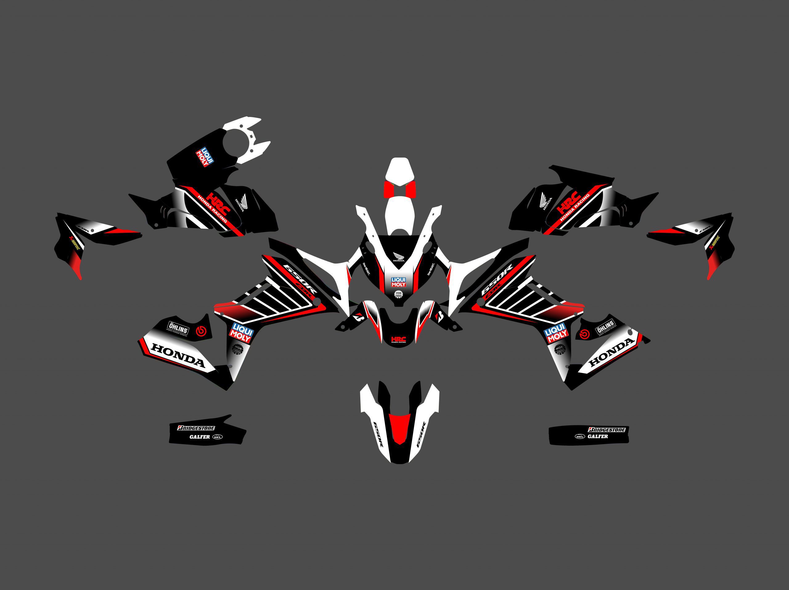 Pour une personnalisation encore plus poussée, vous pouvez customiser votre Kit déco Honda CBR 650 R – HRC Rouge avec nos différentes options comme la base du Kit déco, la finition et pourquoi pas ajouter votre pseudo ou bien changer le numéro.