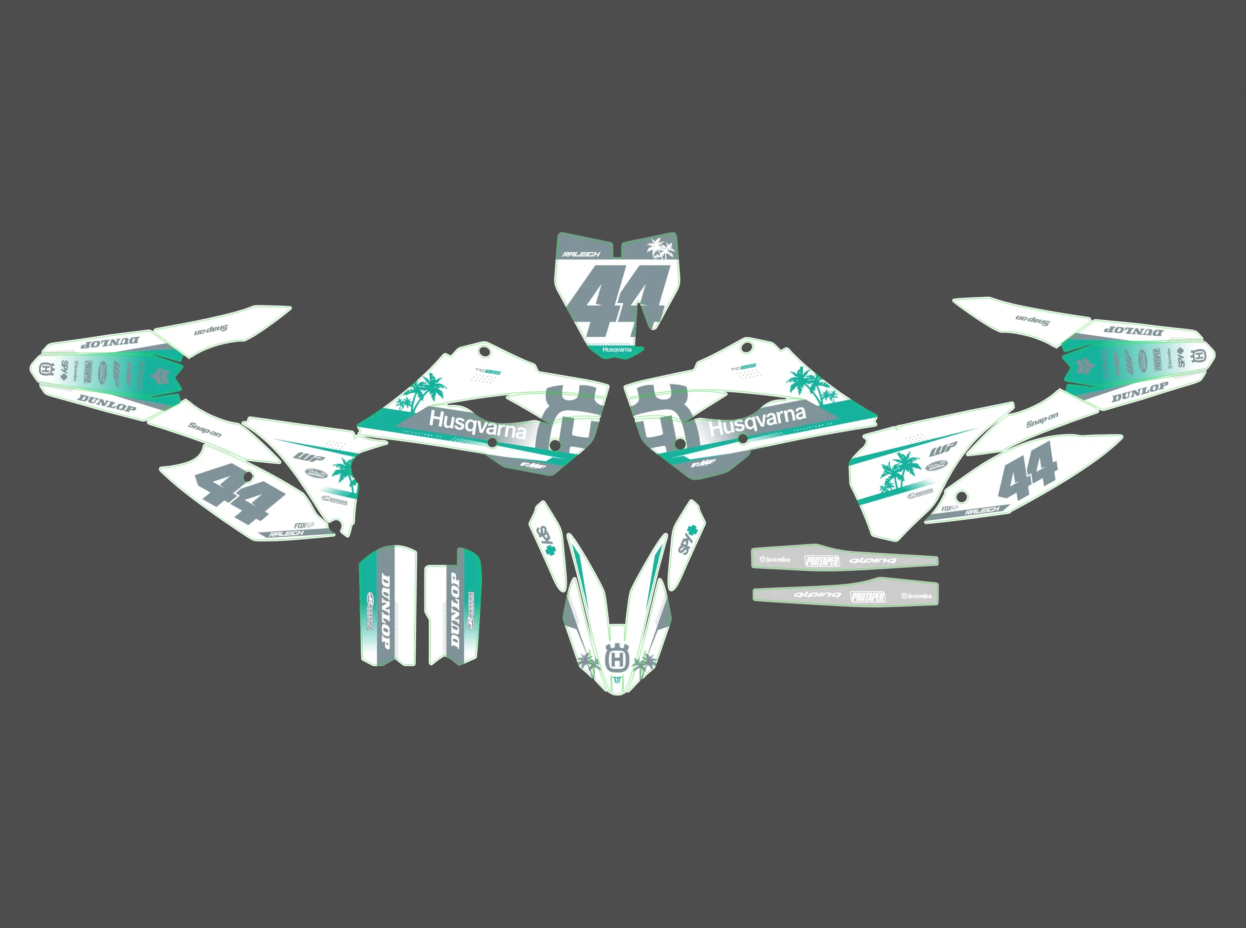 Pour une personnalisation encore plus poussée, vous pouvez customiser votre Kit déco Husqvarna TE / FE (2014-2016) – Miami Cyan avec nos différentes options comme la base du Kit déco, la finition et pourquoi pas ajouter votre pseudo ou bien changer le numéro.