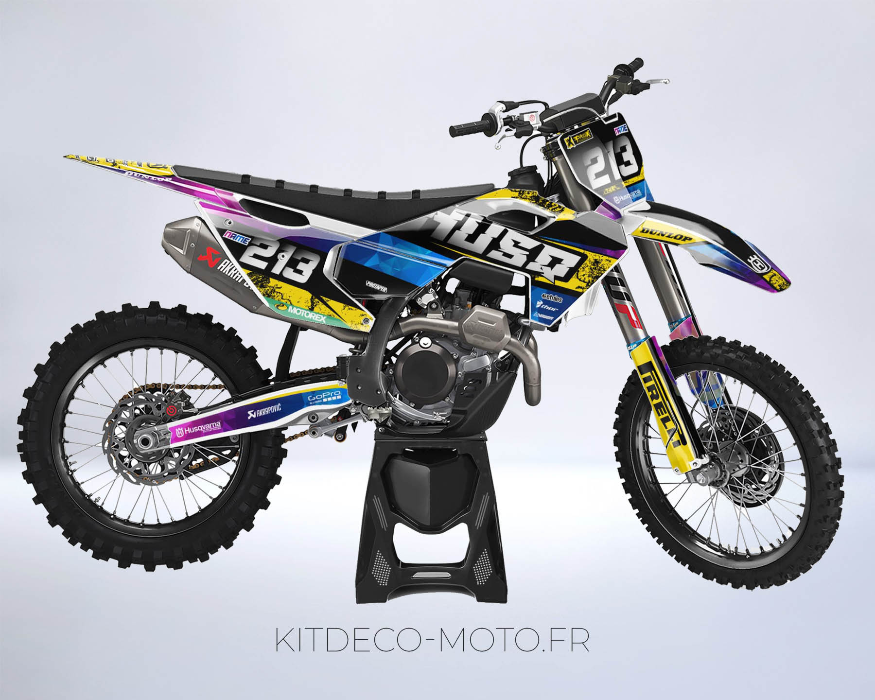 Pour une personnalisation encore plus poussée, vous pouvez customiser votre Kit déco Husqvarna TE / FE (2024-2025) – Couleurs avec nos différentes options comme la base du Kit déco, la finition et pourquoi pas ajouter votre pseudo ou bien changer le numéro.
