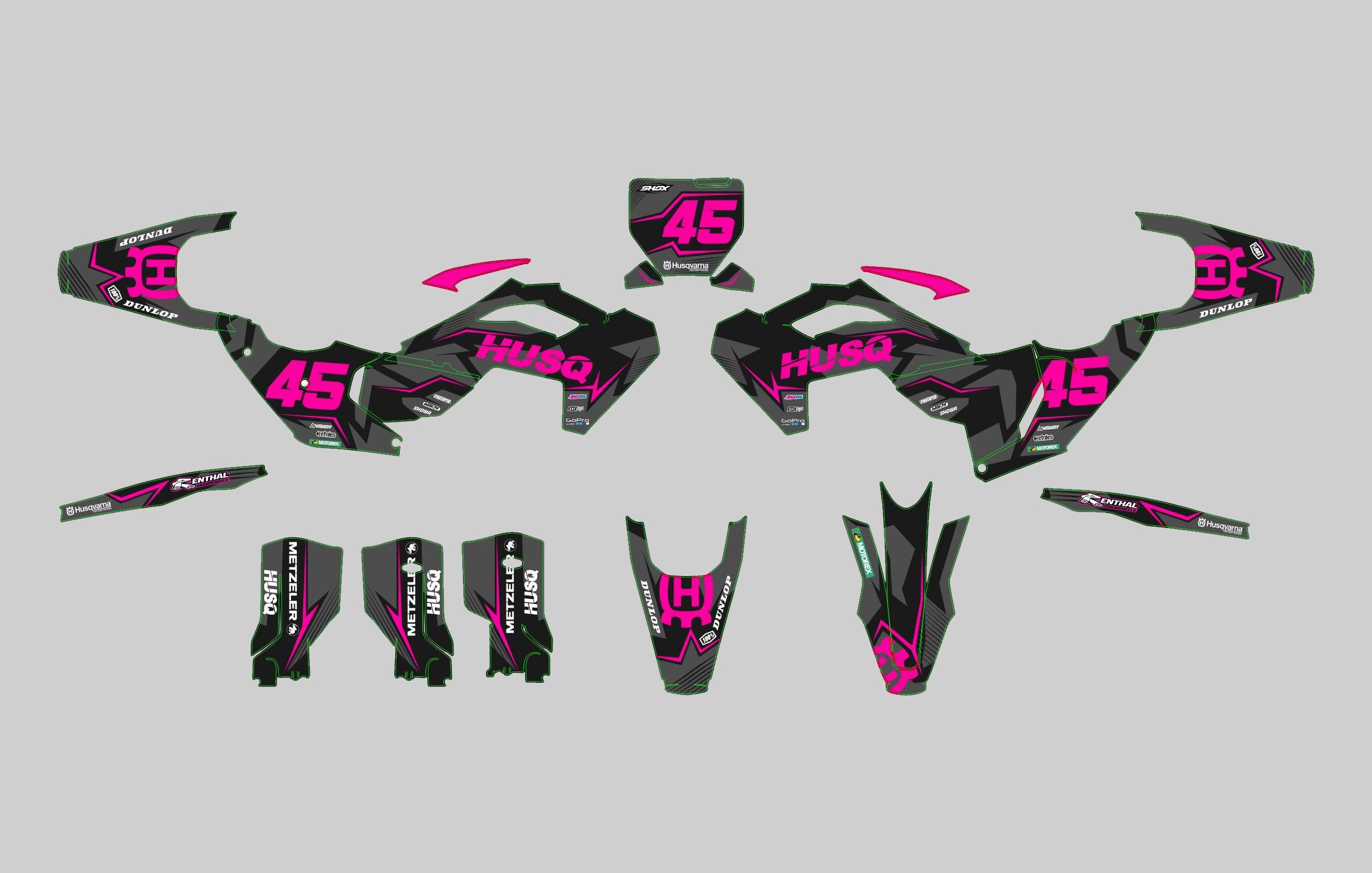 Pour une personnalisation encore plus poussée, vous pouvez customiser votre Kit déco Husqvarna TE / FE (2024-2025) – Factory Rose avec nos différentes options comme la base du Kit déco, la finition et pourquoi pas ajouter votre pseudo ou bien changer le numéro.