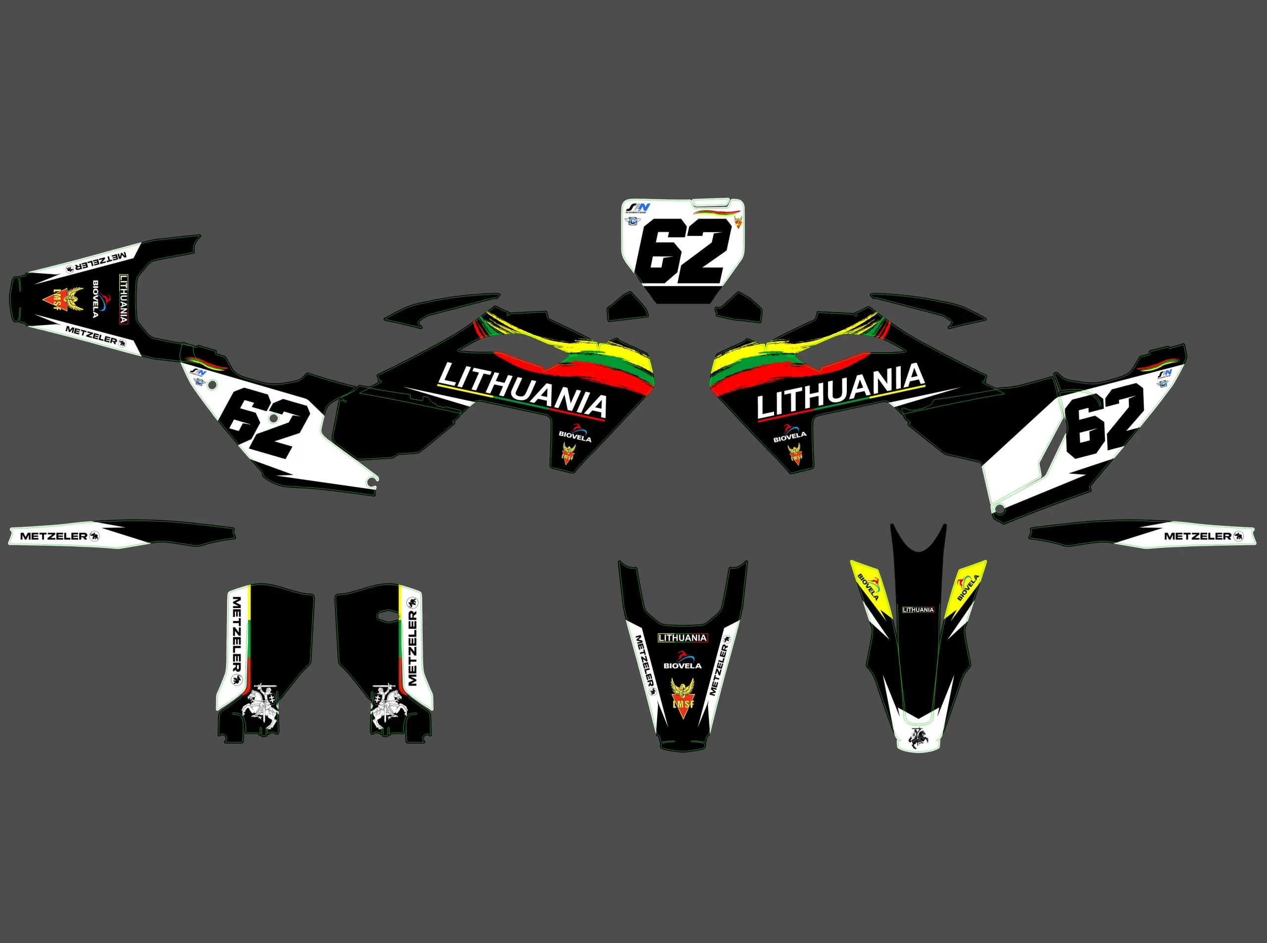Avec le Kit déco Husqvarna TE / FE (2024-2025) – Lithuania, votre moto devient unique et vous aussi. Alors qu’attendez-vous pour donner du style à votre moto ? ????️