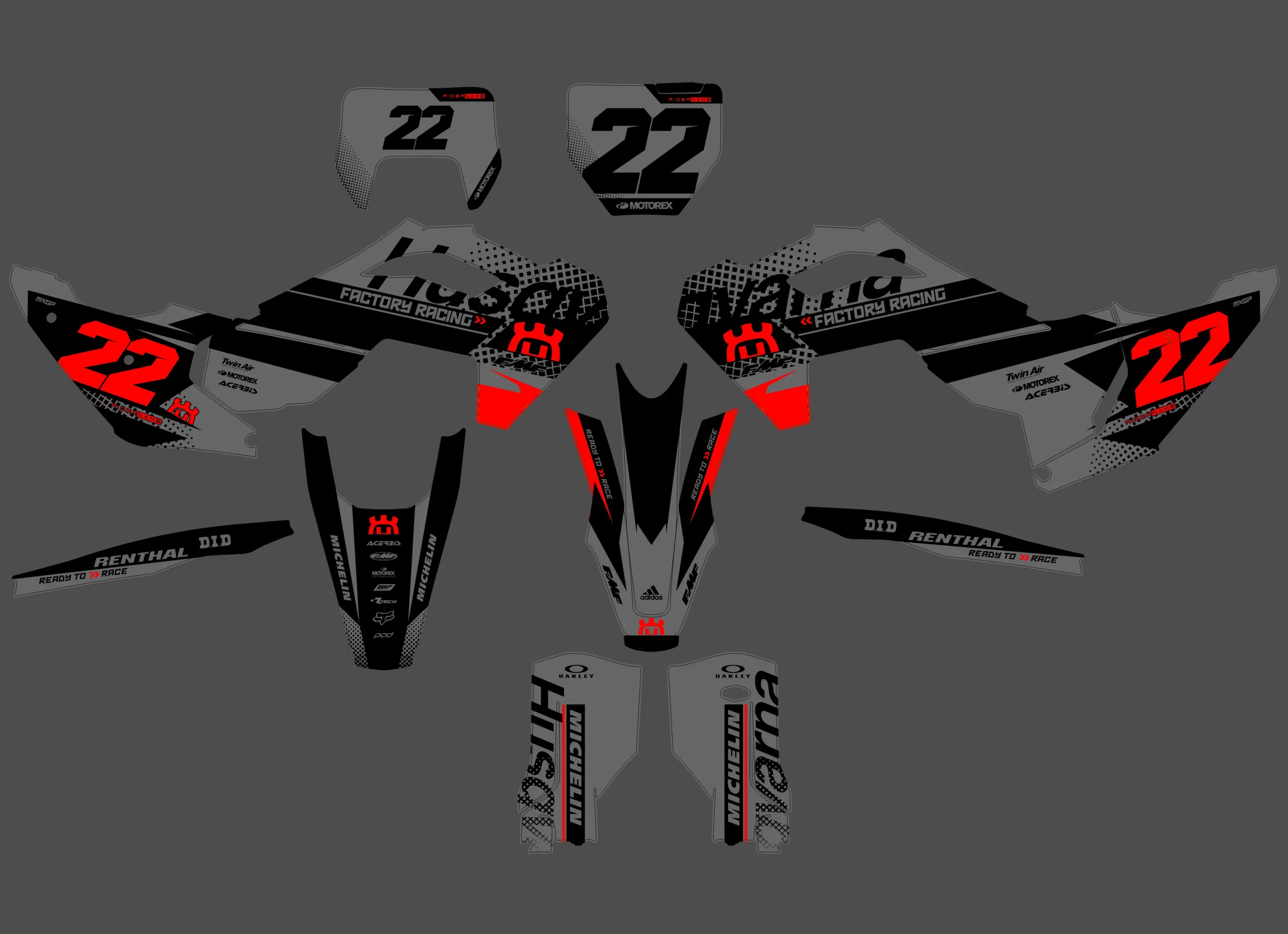 Pour une personnalisation encore plus poussée, vous pouvez customiser votre Kit déco Husqvarna TE / FE (2024-2025) – Loop Rouge avec nos différentes options comme la base du Kit déco, la finition et pourquoi pas ajouter votre pseudo ou bien changer le numéro.