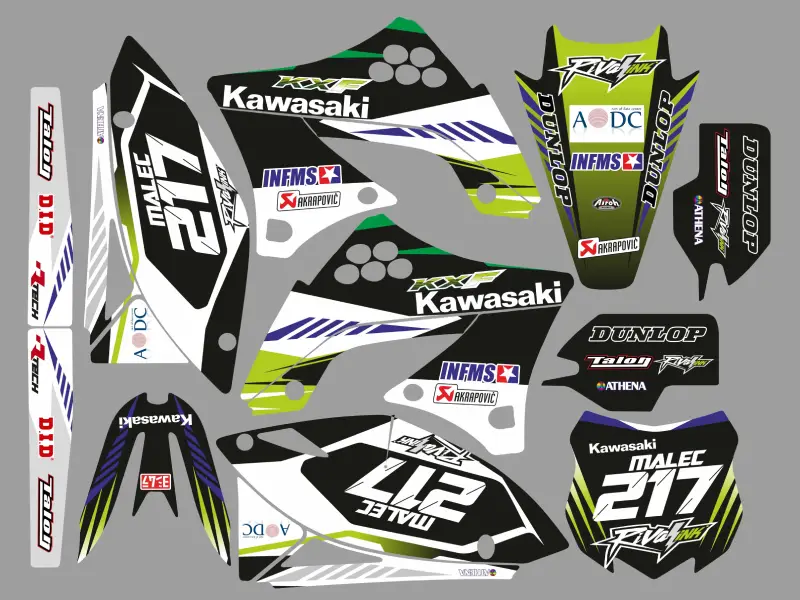 Avec le Kit déco Kawasaki 250 KXF (2009-2012) – Racing, votre moto devient unique et vous aussi. Alors qu’attendez-vous pour donner du style à votre moto ? 🏍️