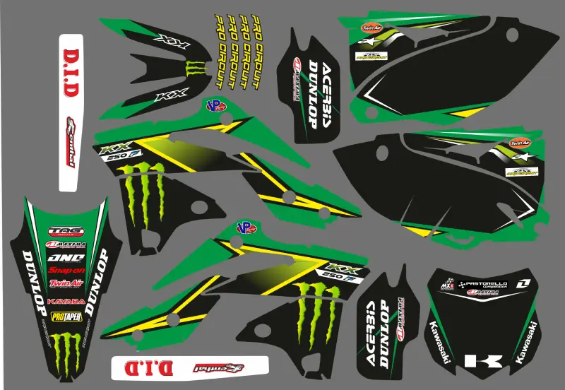 Avec le Kit déco Kawasaki 450 KXF (2012-2015) – Monster #2, votre moto devient unique et vous aussi. Alors qu’attendez-vous pour donner du style à votre moto ? 🏍️