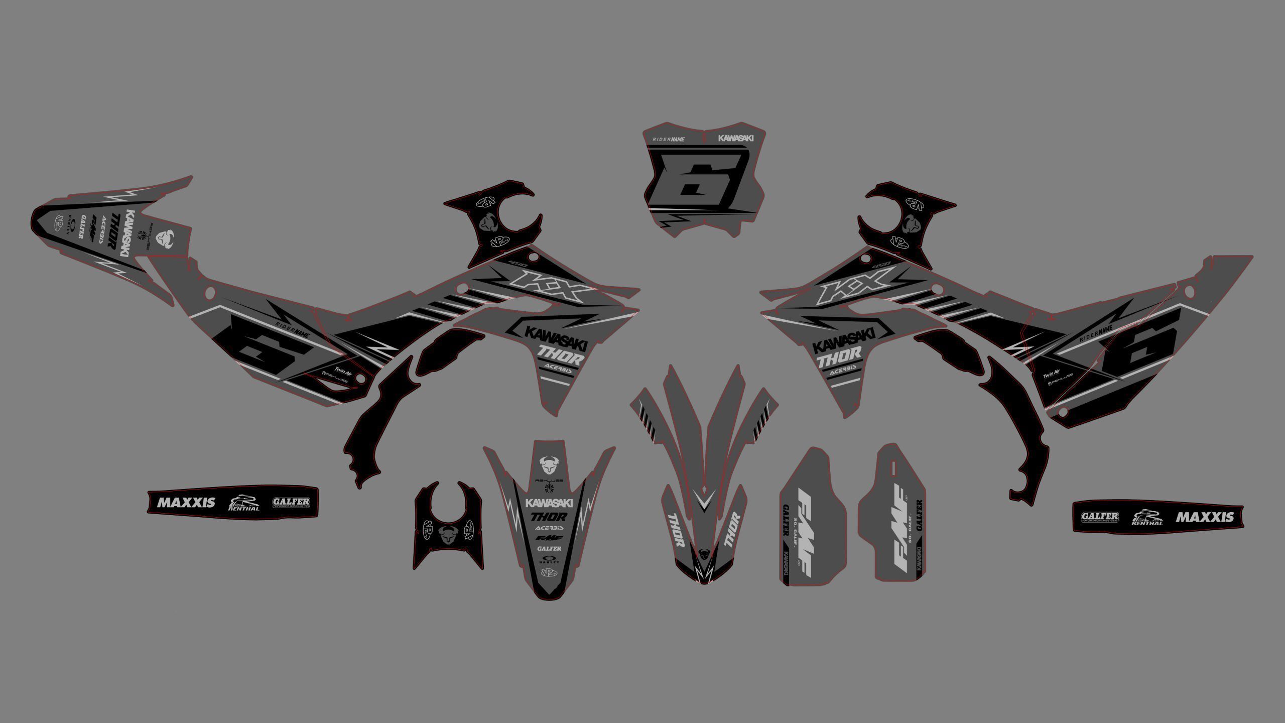 Kit déco Kawasaki 450 KXF (2024) – Factory Gris