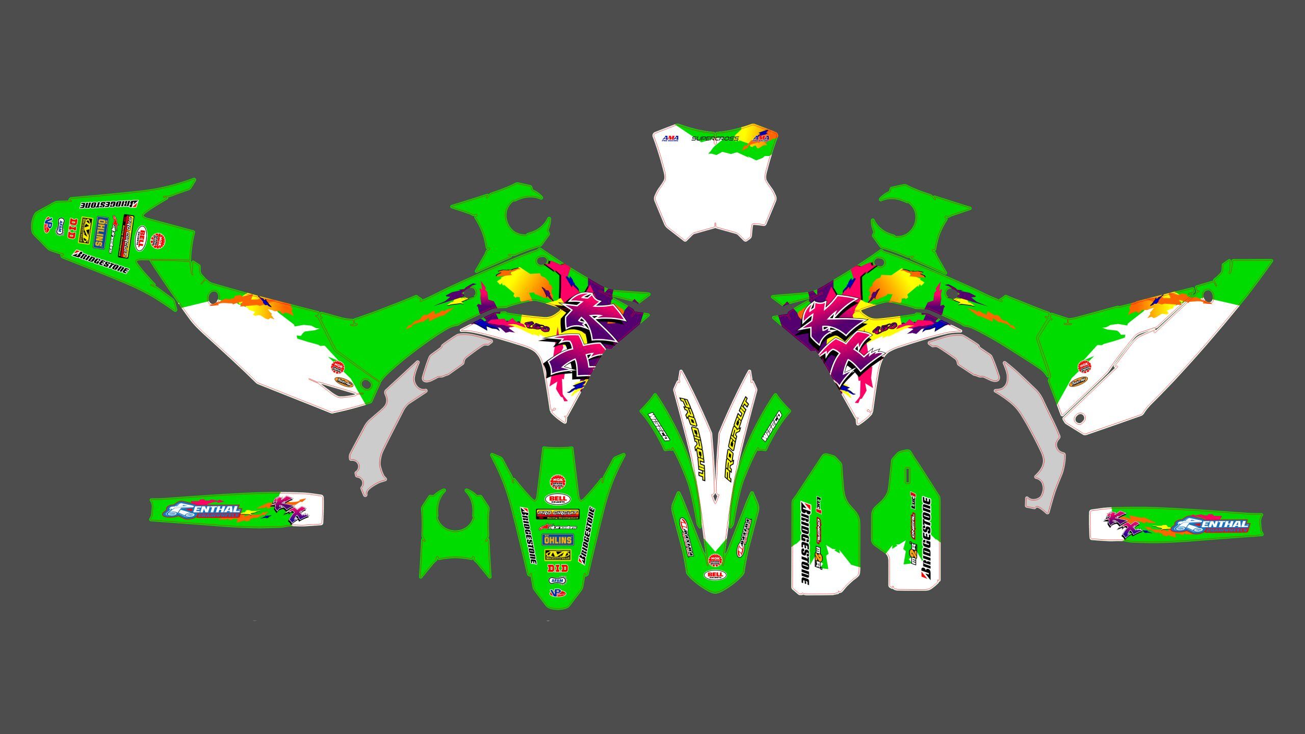 Kitdeco-moto.fr vous propose ce kit déco compatible pour Kawasaki 450 KXF de 2024 !
