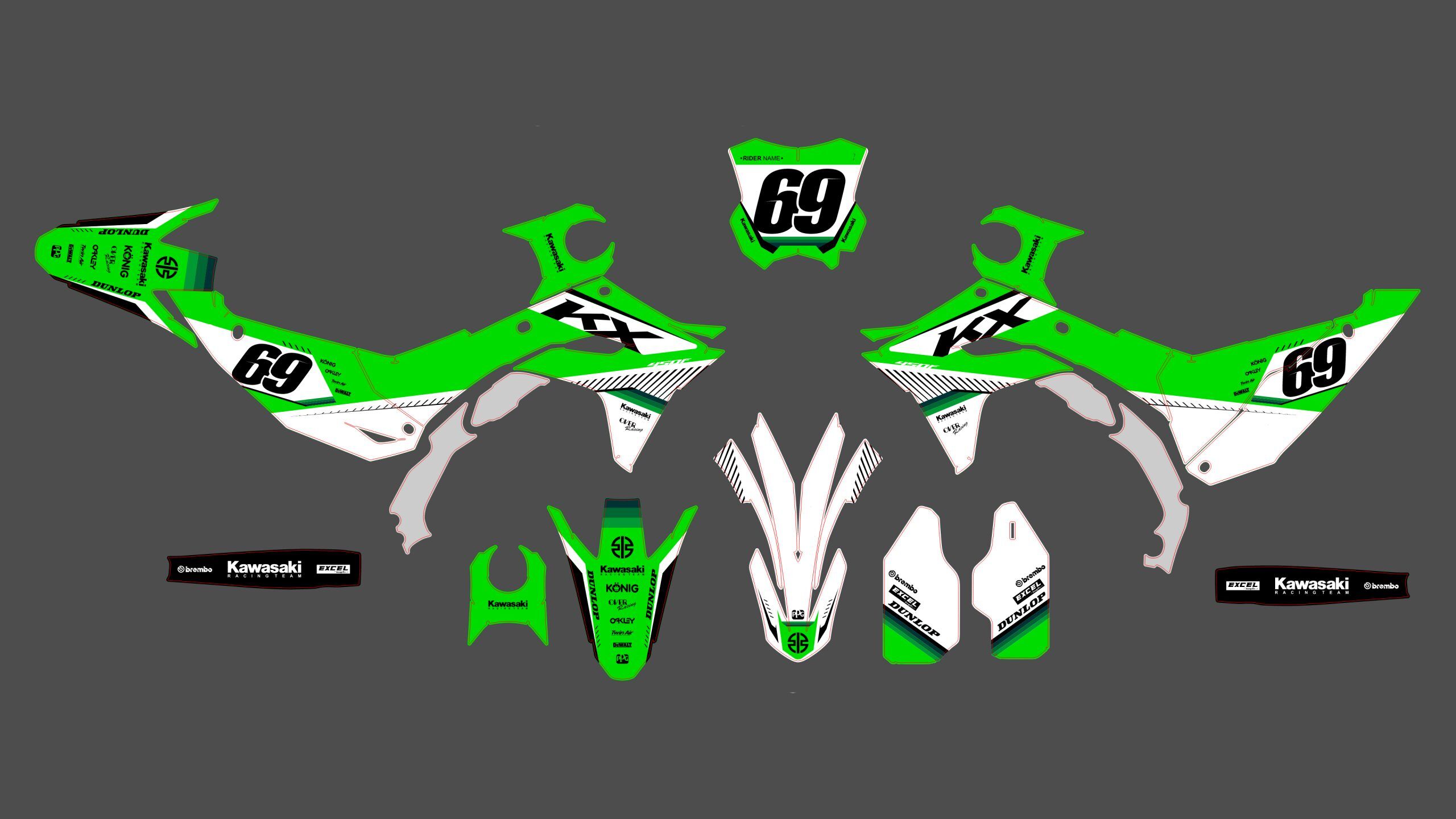 Kitdeco-moto.fr vous propose ce kit déco compatible pour Kawasaki 450 KXF de 2024 !