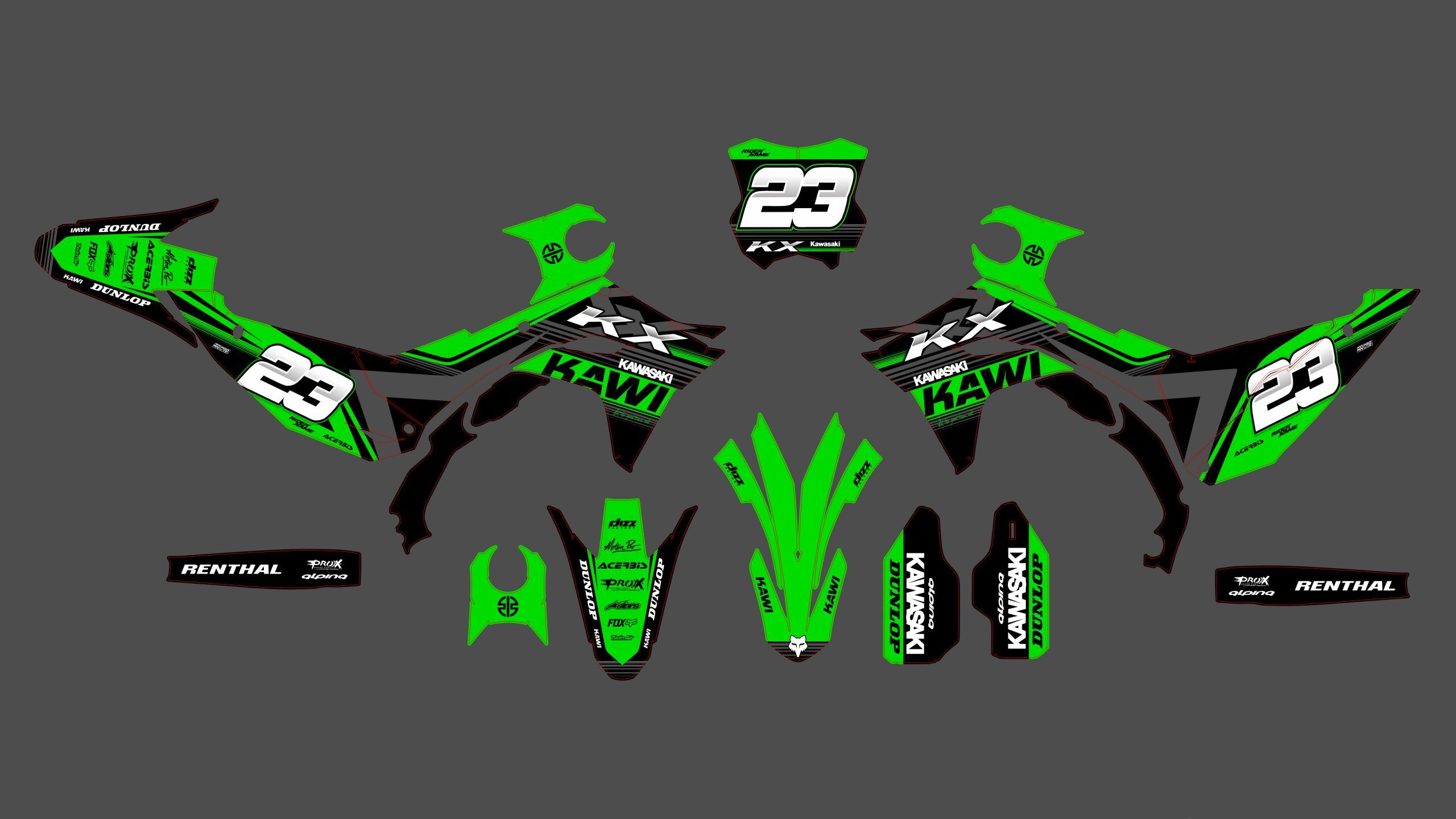 Kitdeco-moto.fr vous propose ce kit déco compatible pour Kawasaki 450 KXF de 2024 !