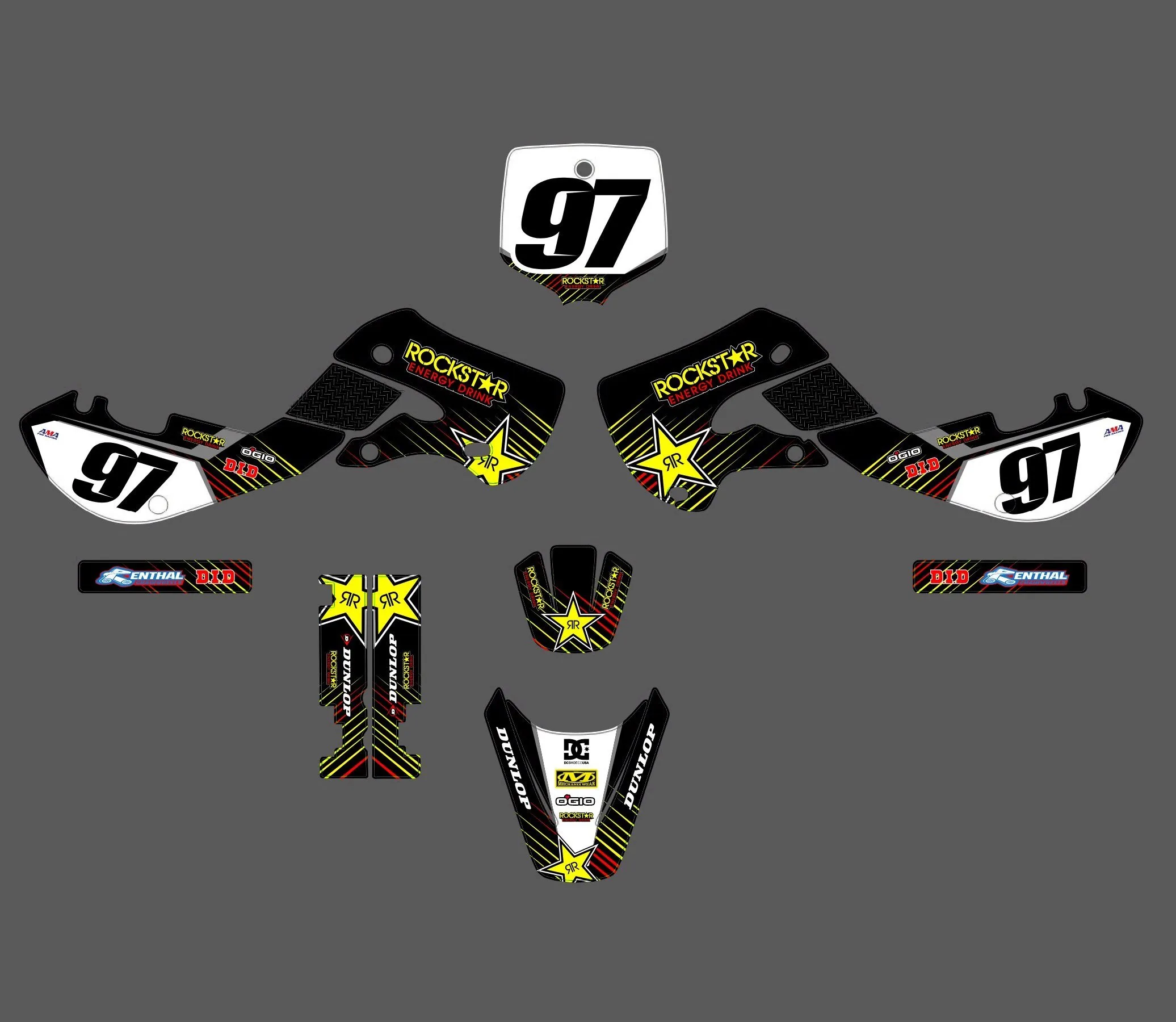 Avec le Kit déco Kawasaki 65 KX (2000-2024) – Rockstar, votre moto devient unique et vous aussi. Alors qu’attendez-vous pour donner du style à votre moto ? 🏍️
